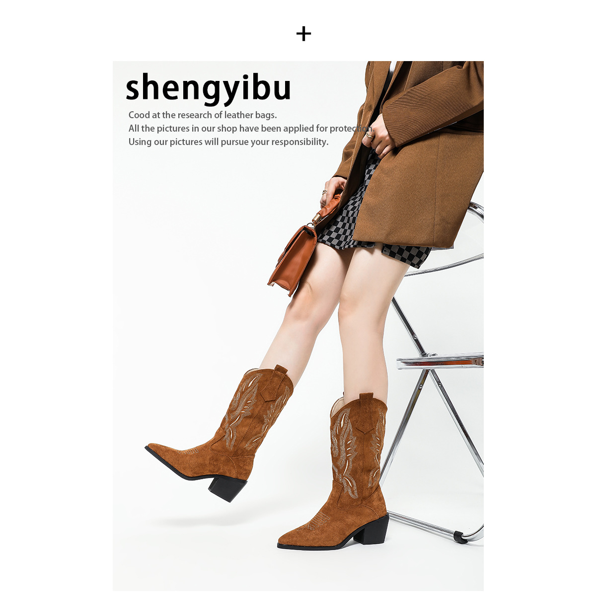 Главная страница > Новые демисезонные сапоги 2025 года с V-образным вырезом и вышивкой, в стиле ретро, средней длины, с острым носком, на массивном каблуке, для верховой езды, трансграничная продажа