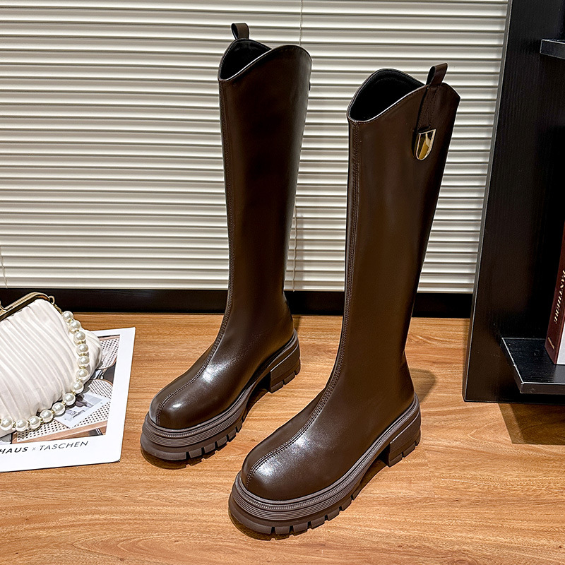 Сапоги женские 2024 осень и зима новые маленькие толстые миллиметы толстые ноги без колен V рта тонкие сапоги рыцаря