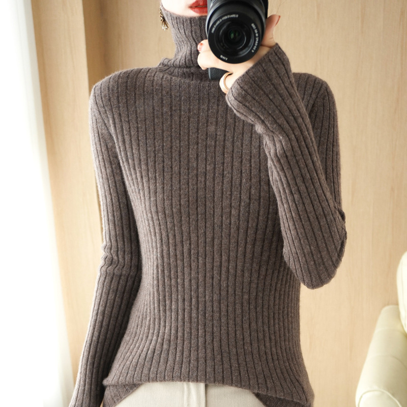 Главная страница > Шерстяной трикотажный свитер укороченный, приталенный, с воротником-стойкой, в полоску, утепленный, осень-зима 2025, новинка для женщин