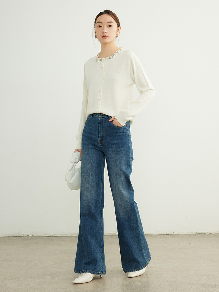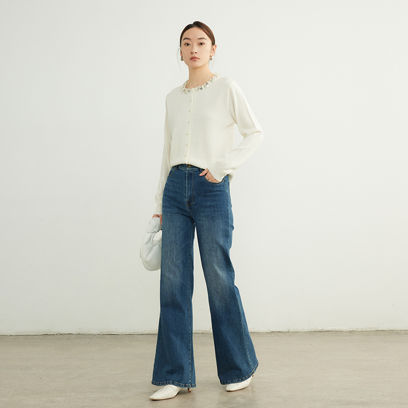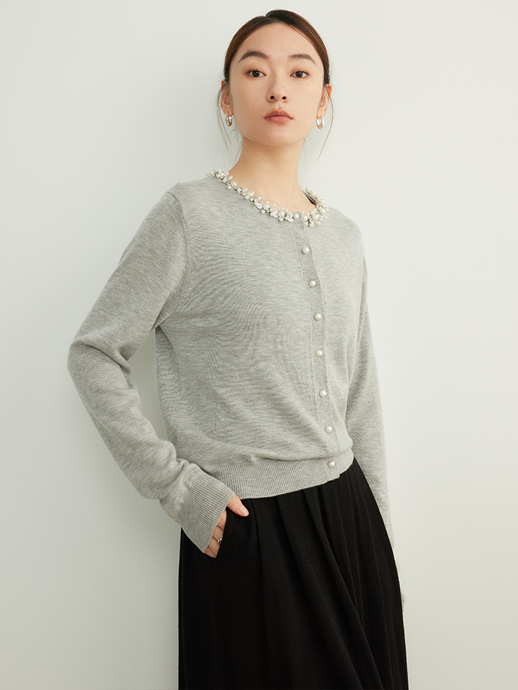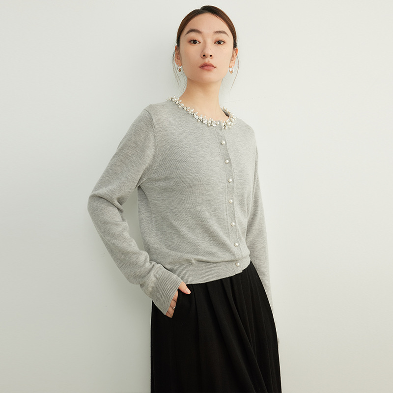 Главная страница > Элегантный женский вязаный кардиган из шерсти с бисером, тонкий, для ранней осени 2025 года, моделирующий фигуру.