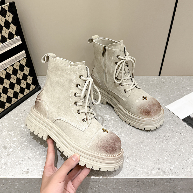 Главная страница > Ботинки Martin с толстой подошвы женщины осень 2024 новый кожаный ретро ревень сапоги тонкие металлические британские ботинки вентилятора