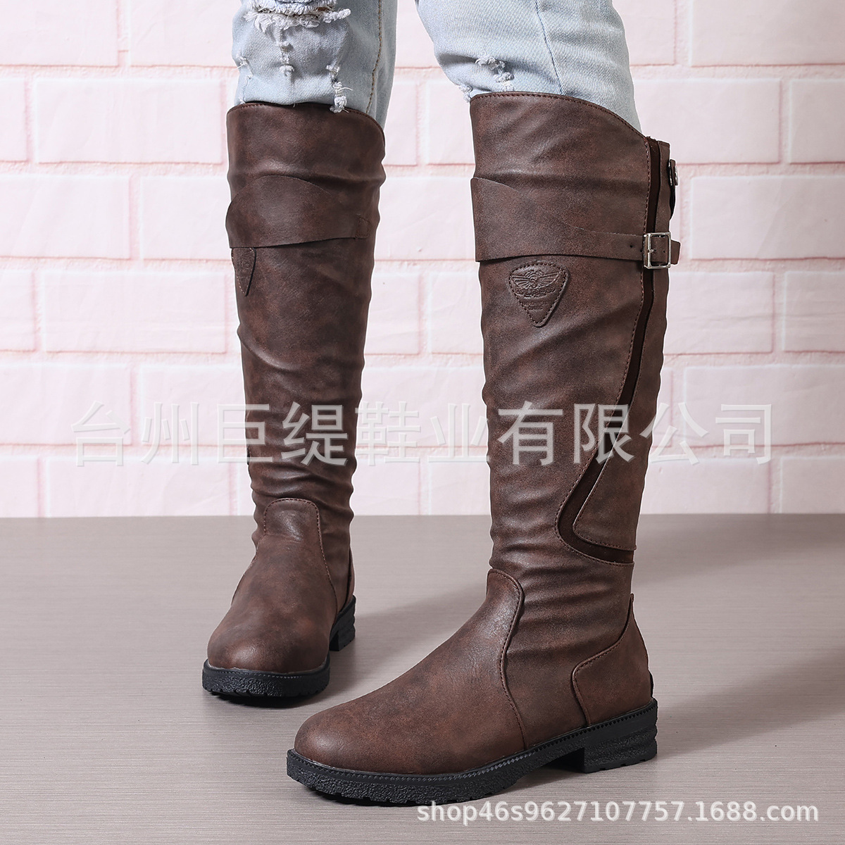 Главная страница > Осень и зима 2021 Новые женские кожаные сапоги Amazon больших размеров в наличии для внешней торговли с высокой трубкой и длинным плоским круглым носком
