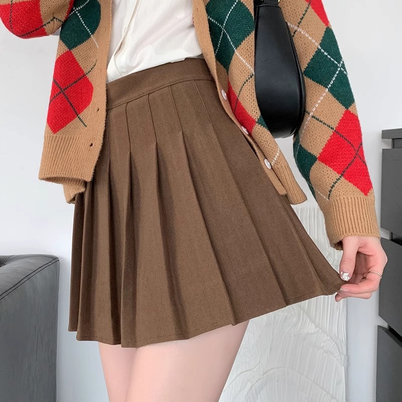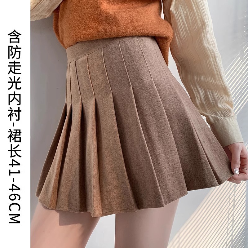 Главная страница > Черная шерстяная плиссированная юбка для женщин, осень-зима 2025, высокая талия, утягивающая, скрывающая недостатки, юбка А-силуэта, утолщенная