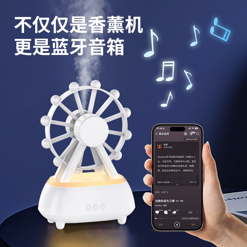 Главная страница > Новый трансграничный декор для спальни, настольный спрей, машина для ароматерапии, Bluetooth-аудио, вращающийся атмосферный светильник, увлажнитель с колесом обозрения