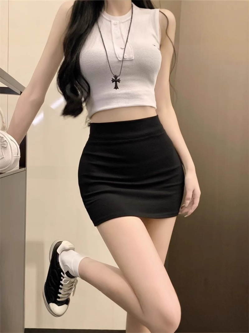2025 новая чистая летняя черная юбка девушка с высокой талией дикая мачеха