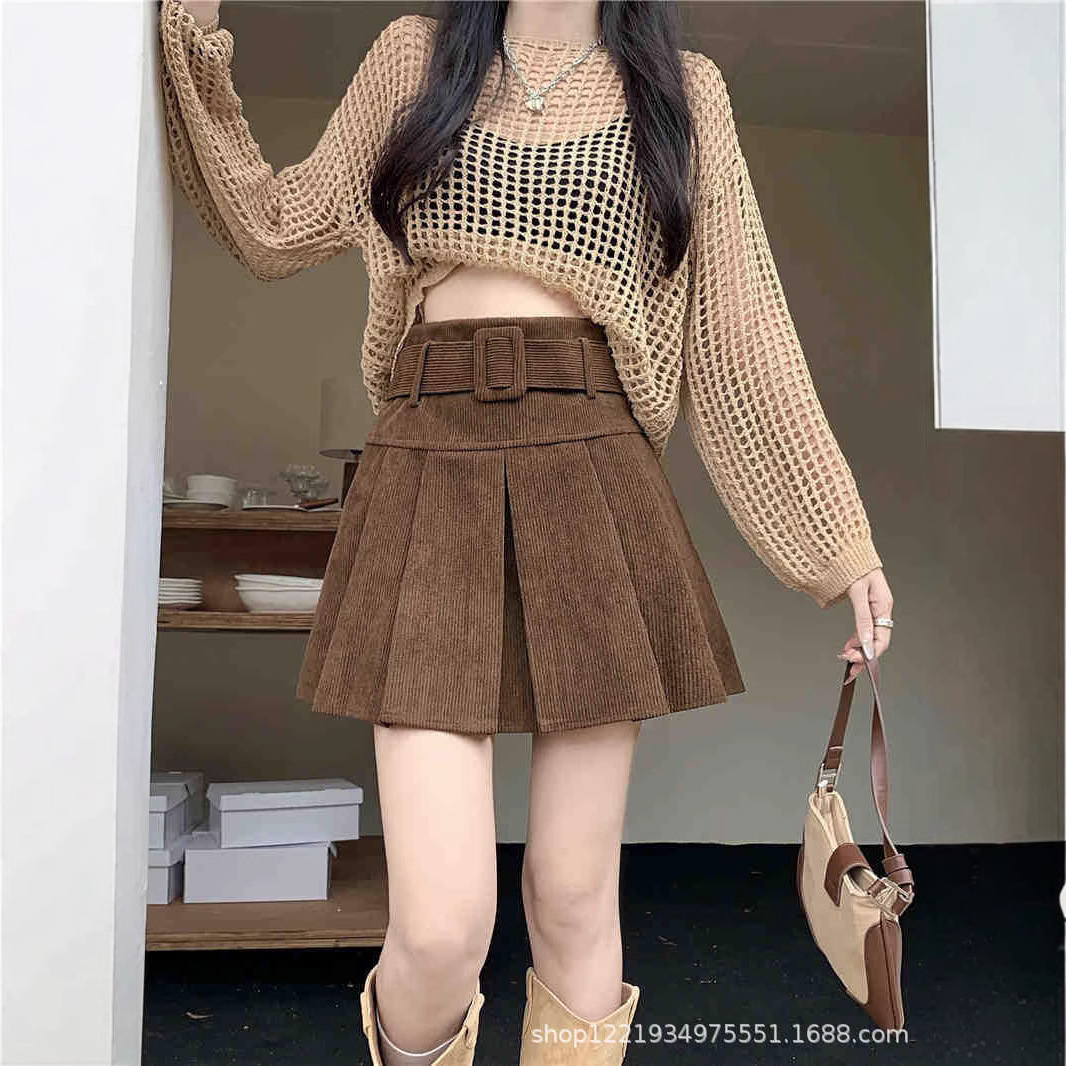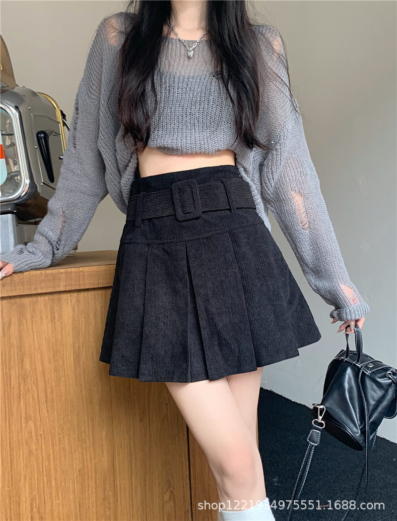 Главная страница > Вельветовая плиссированная юбка А-силуэта, короткая юбка для женщин на осень и зиму, с защитой от просвечивания, с высокой талией, стройнящая, черная, закрывающая бедра.