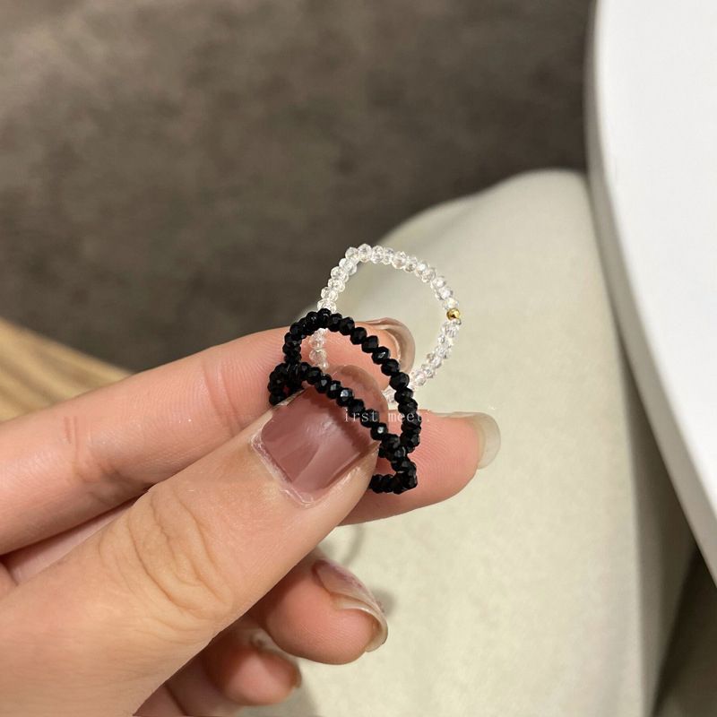 Эластичное регулируемое кольцо с кристаллами Женская мода Простой Студент Универсальный нишевый дизайн чувство пара кольцо на указательный палец