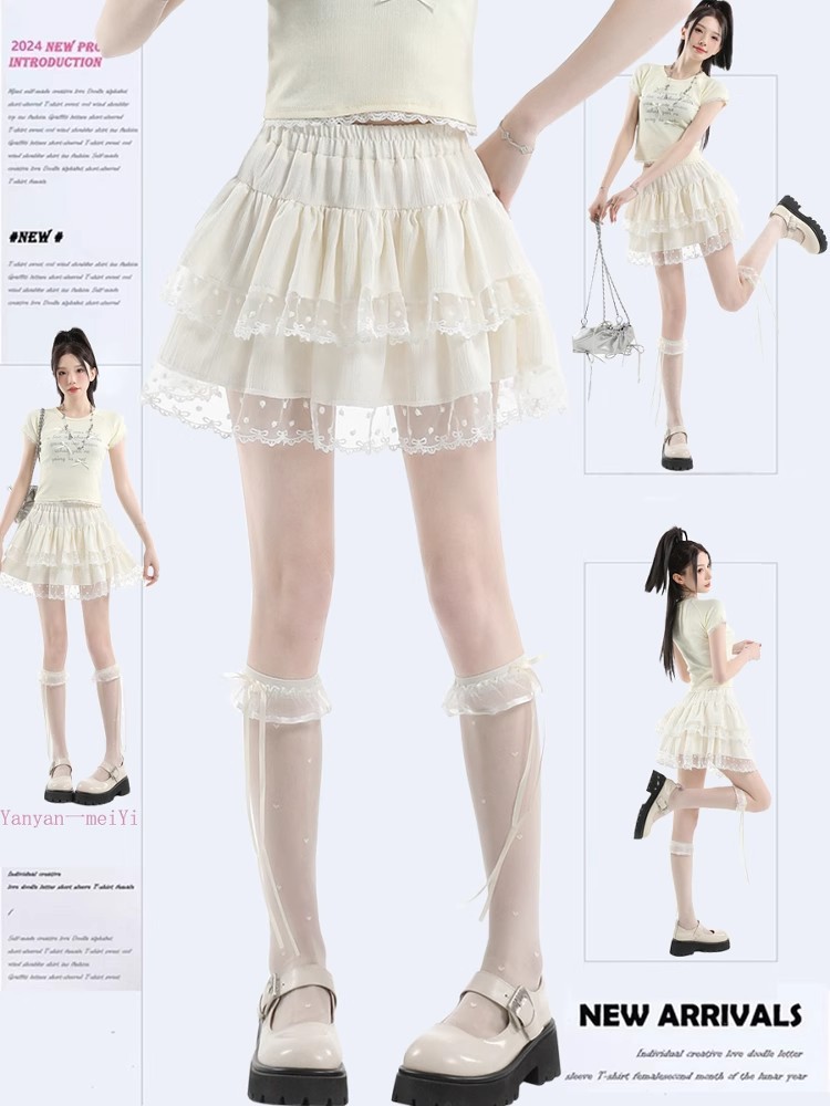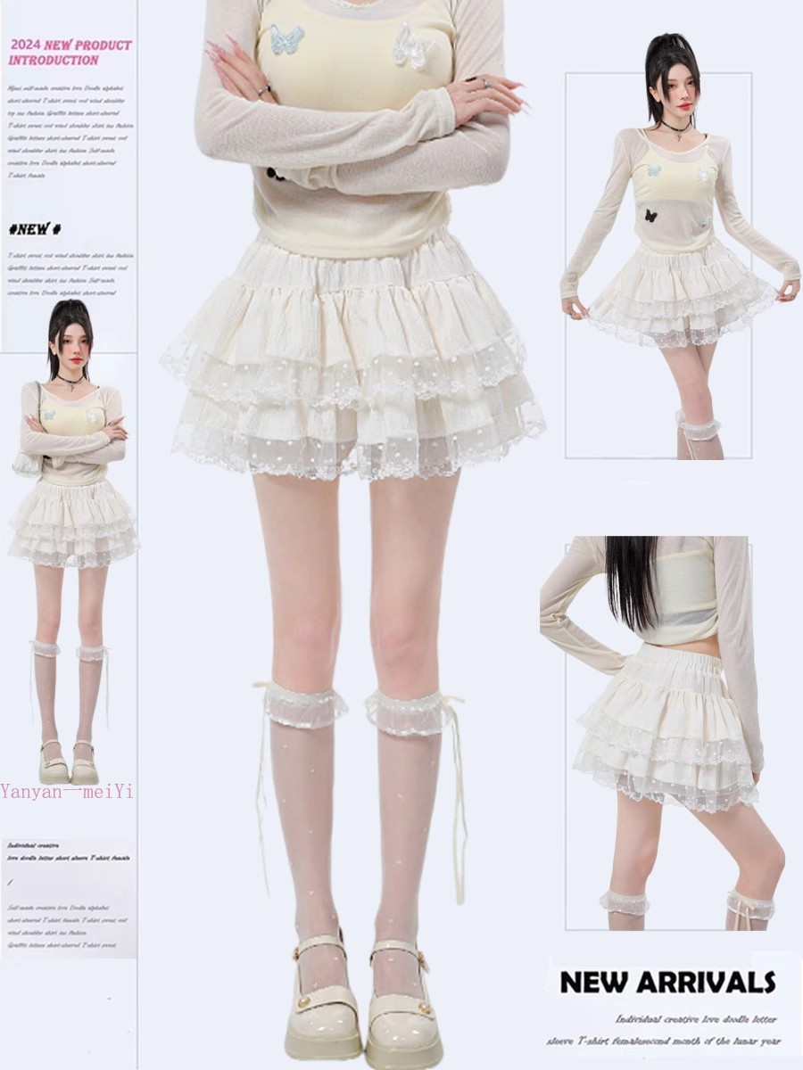 Главная страница > Белая кружевная юбка для торта Юбка Юбка Женская весна и лето высокая талия тонкая маленькая юбка