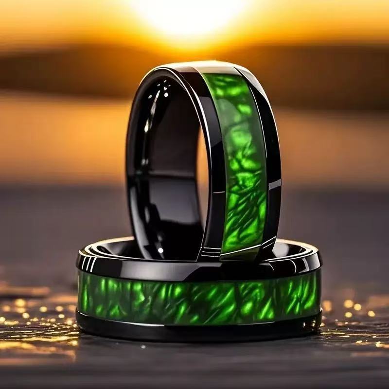 Золотое кольцо из нержавеющей стали с зеленым фоном