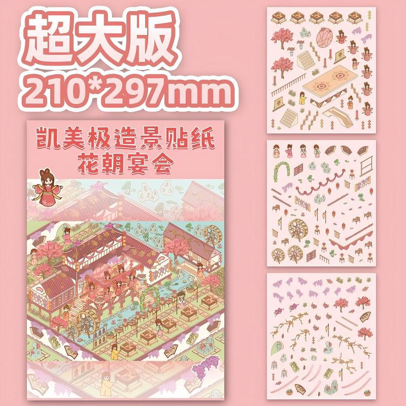 [Наклейки с большой сценой: 1 книга цветочного здания моей семьи]
