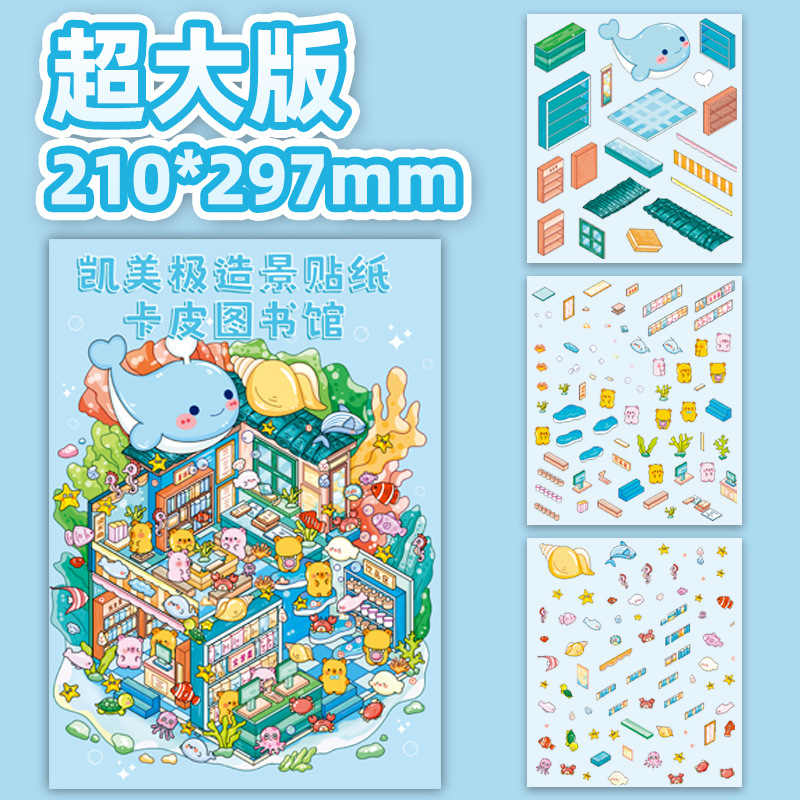 [Наклейки с большой сценой: 1 картонная библиотека]