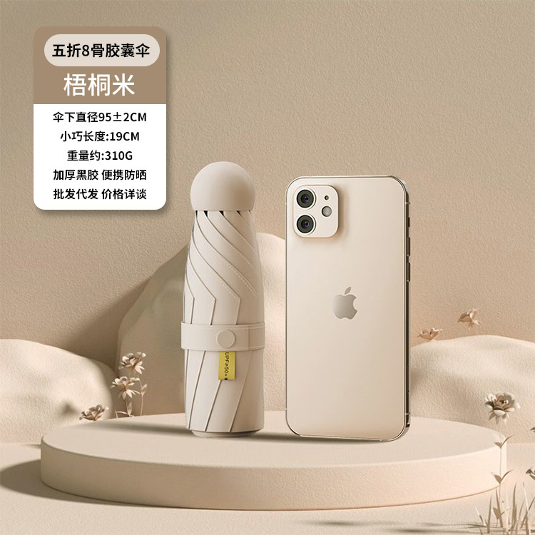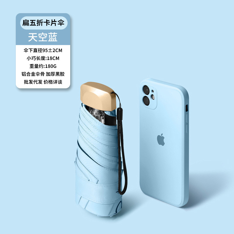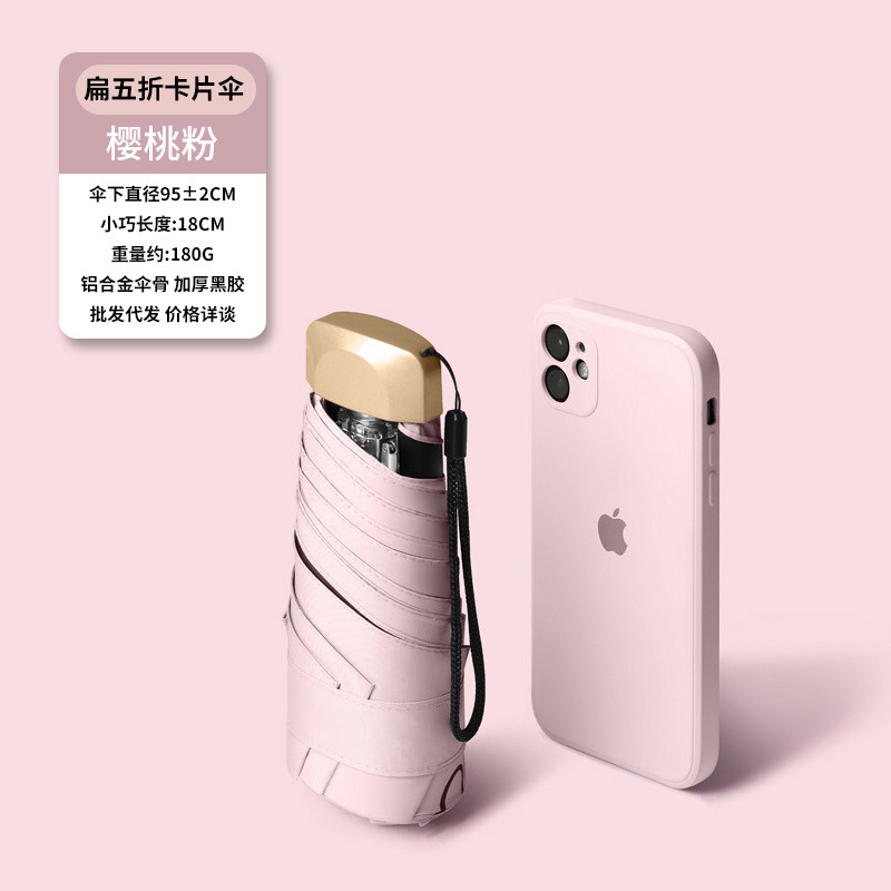 Зонт-капсула Mini 50% off с черным покрытием для защиты от солнца, складной, для солнечных и дождливых дней, с держателем для карт, оптом, с возможностью нанесения логотипа, рекламный зонт от солнца.