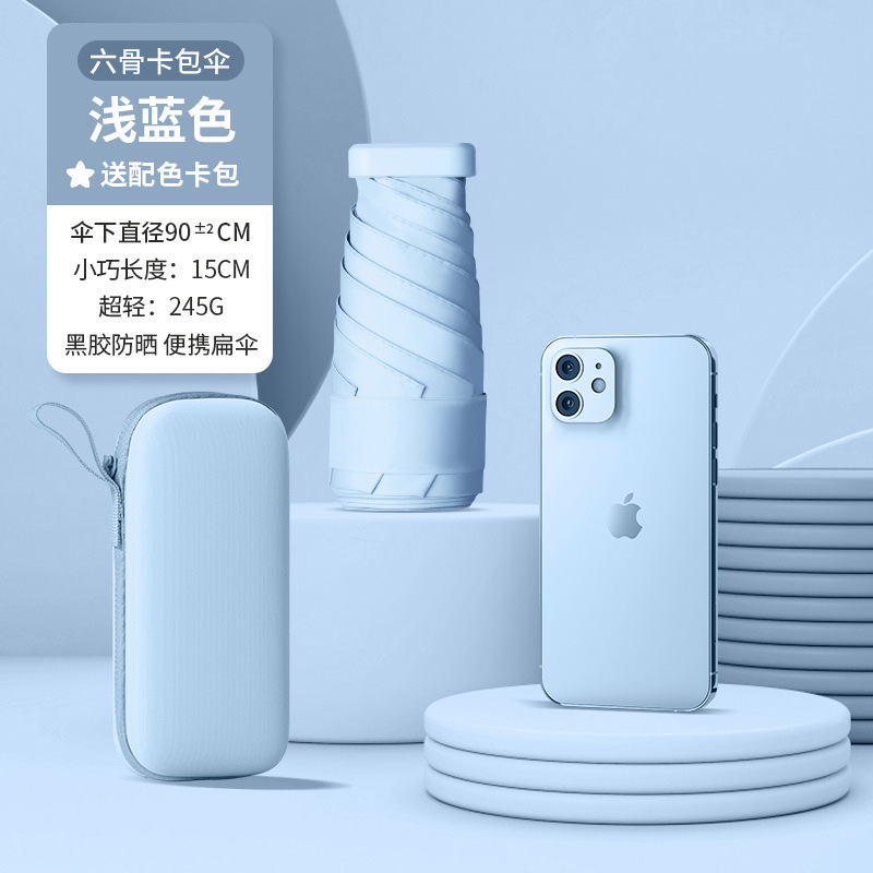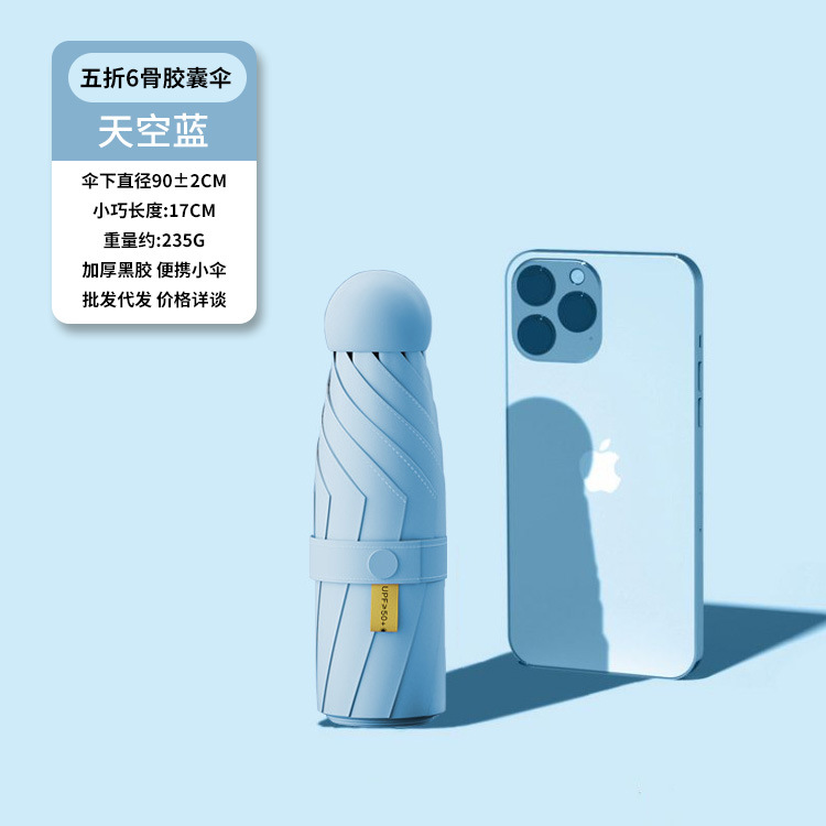 Скидка 50 % на капсульный зонт небесно-голубого цвета с 6 косточками [толстый винил]