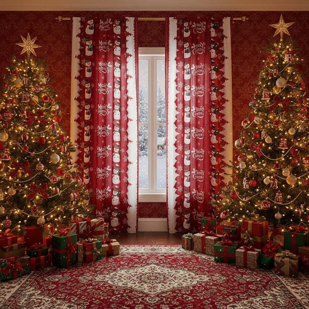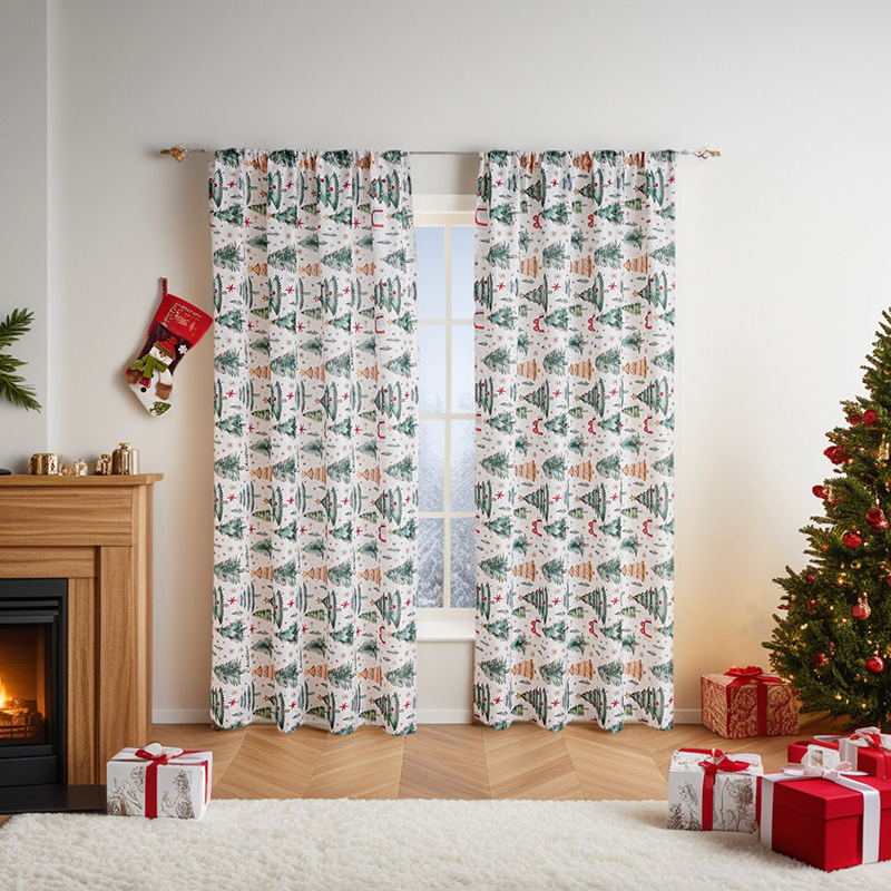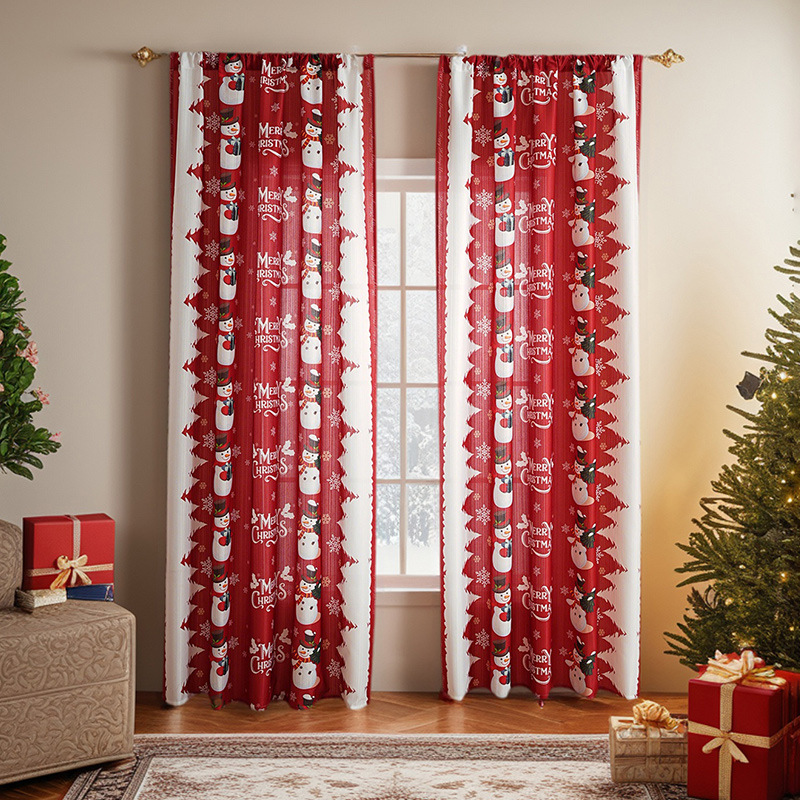 Новые американские рождественские шторы с рождественской тематикой, ткань с принтом, затемняющие прямоугольные украшения, декоративные готовые шторы из ткани