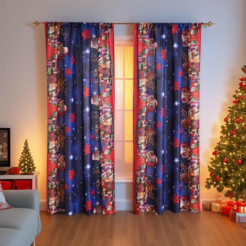 Главная страница > Новые американские рождественские шторы с рождественской тематикой, ткань с принтом, затемняющие прямоугольные украшения, декоративные готовые шторы из ткани