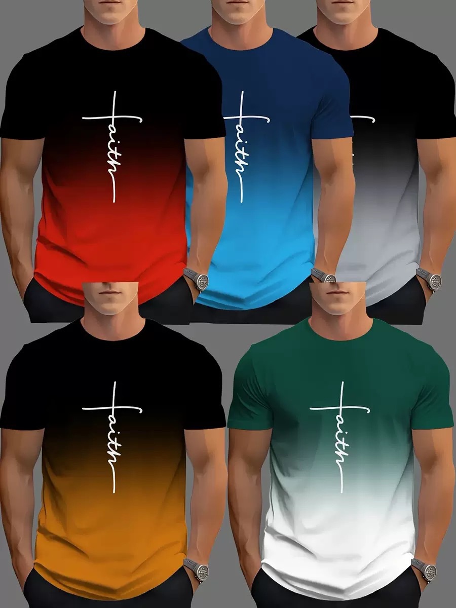Мужская футболка Amazon с круглым вырезом, коротким рукавом, однотонная, с градиентом, летняя, повседневная, дышащая, быстросохнущая