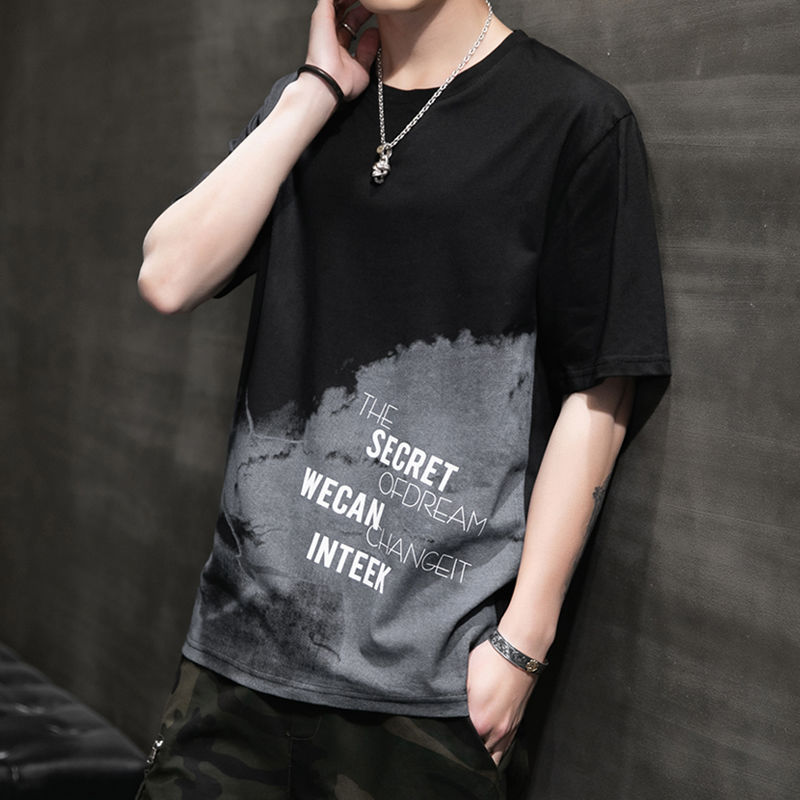 Главная страница > Мужская футболка с короткими рукавами Летняя модная футболка Свободная Модная брендовая Молодежная мужская Футболка с рукавами до локтя Топ одежды