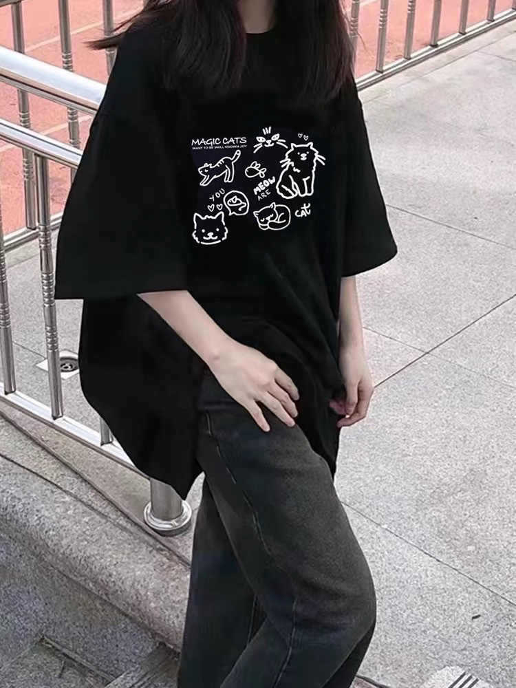 Главная страница > Толстая миллиметровая американская футболка с короткими рукавами летняя черная хлопчатобумажная свободная полурукава нишевый большой размер 2-300 кг топ