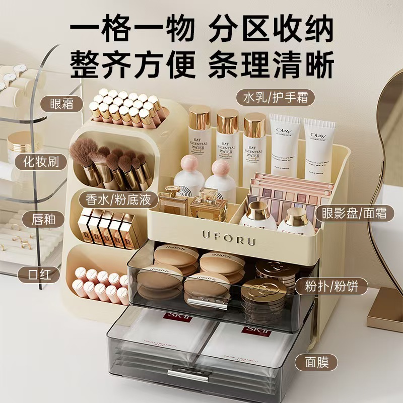 Главная страница > Косметическая настольная коробка для хранения домашнего туалетного столика большой емкости щетка для ручки для макияжа губная помада для теней для век
