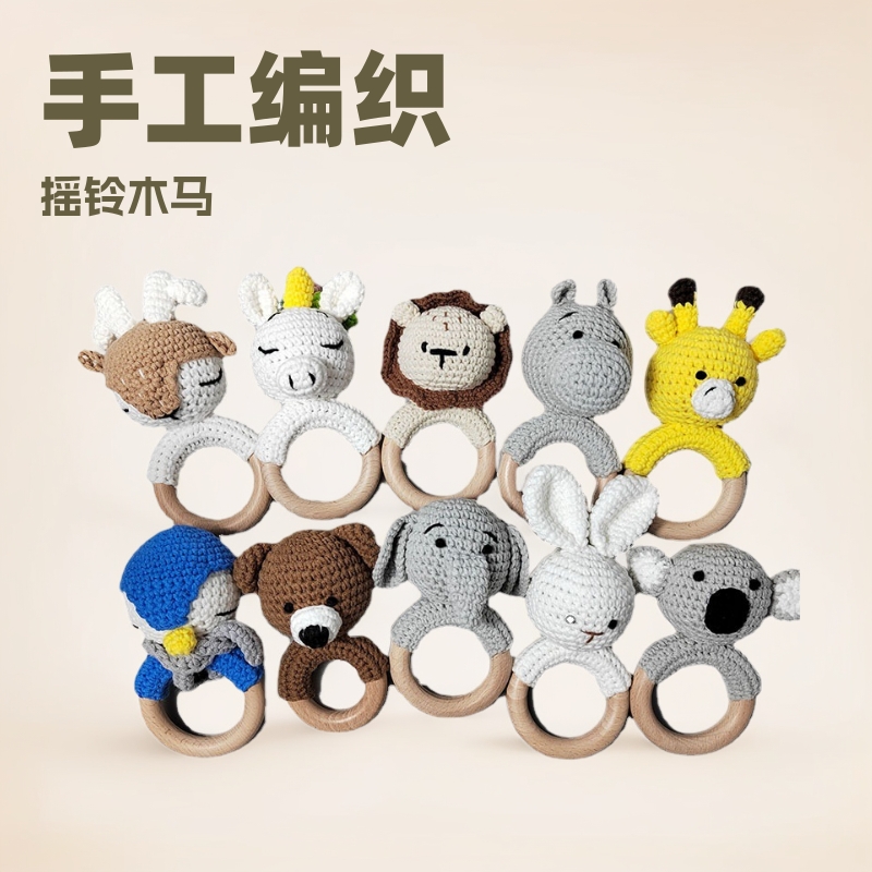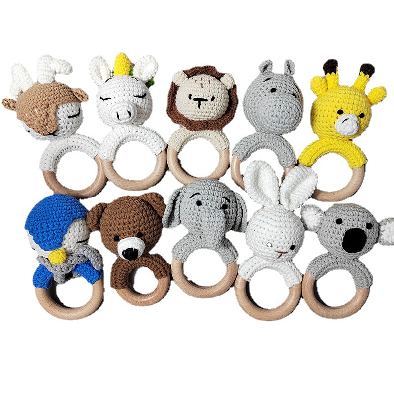 Вязание крючком детские животные погремушка игрушка ручной работы шерсть животных Погремушка бук дерево коренные зубы
