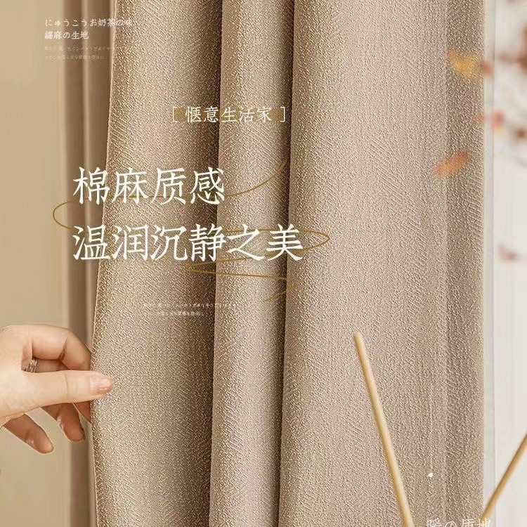 Утолщенная полная затенение спальни 2023 Новый хлопковая и льняная занавеска в японском стиле гостиная французский стиль чай с молоком высококачественный водный хлопок