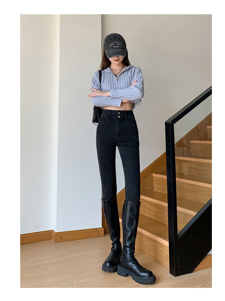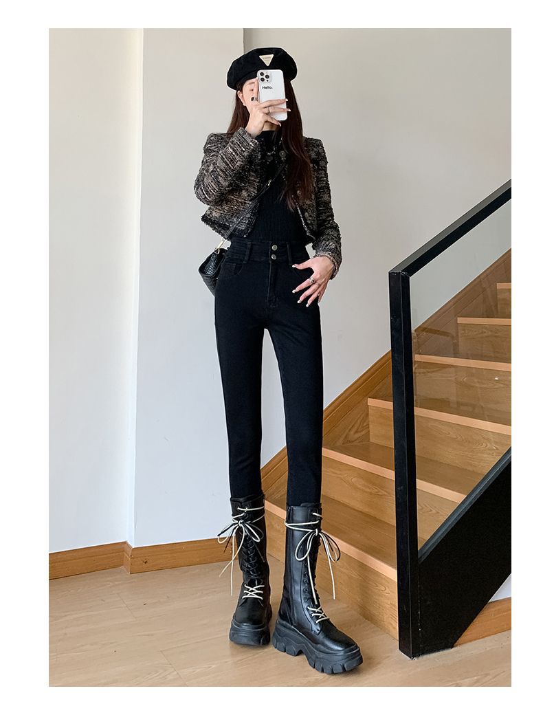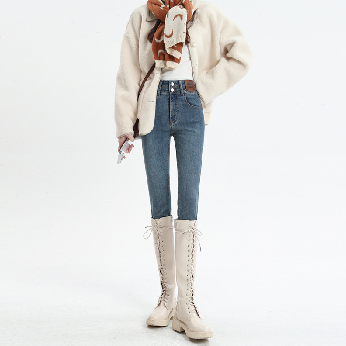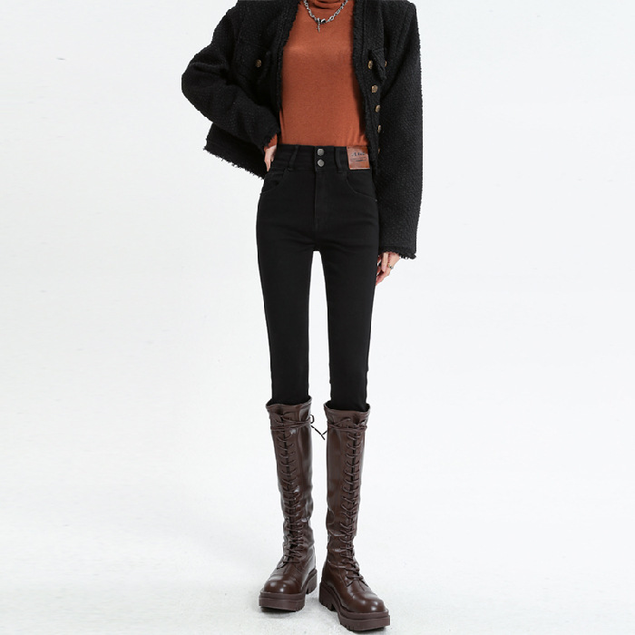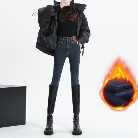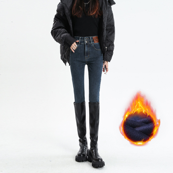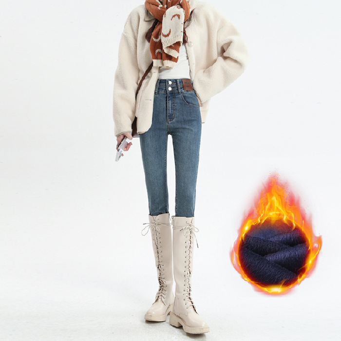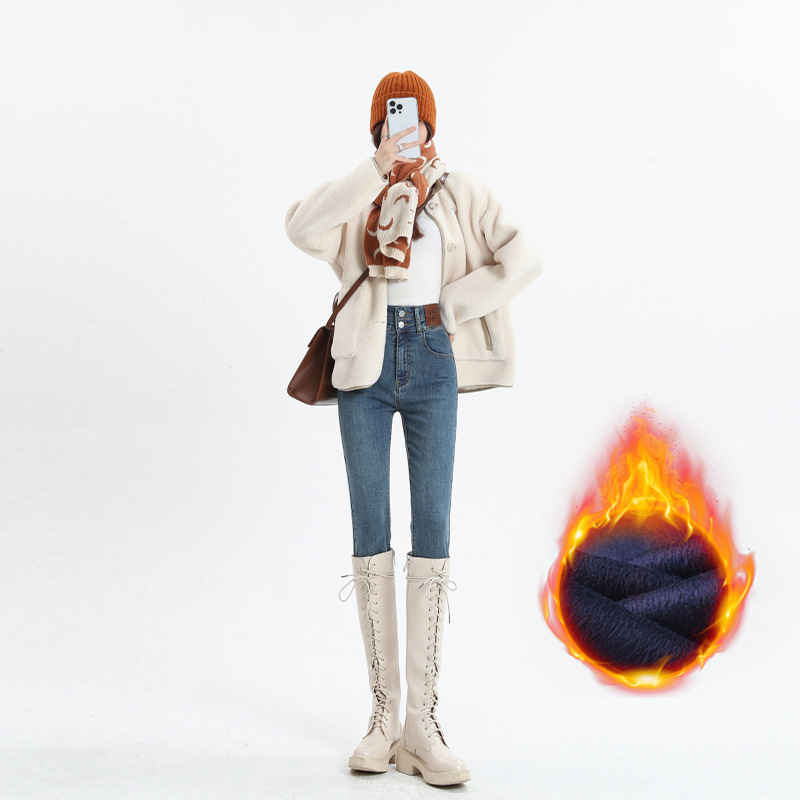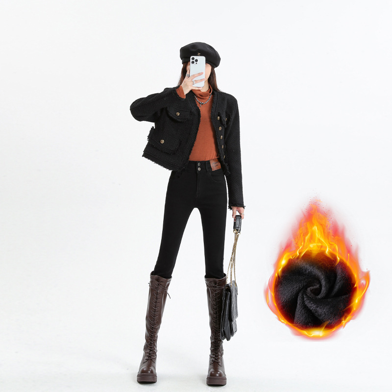 Главная страница > Эластичные узкие брюки, джинсы на флисовой подкладке, женские осенне-зимние американские узкие брюки-карандаш для миниатюрных женщин, осень и зима