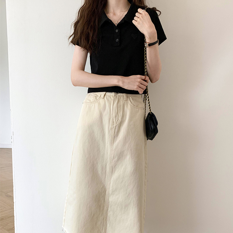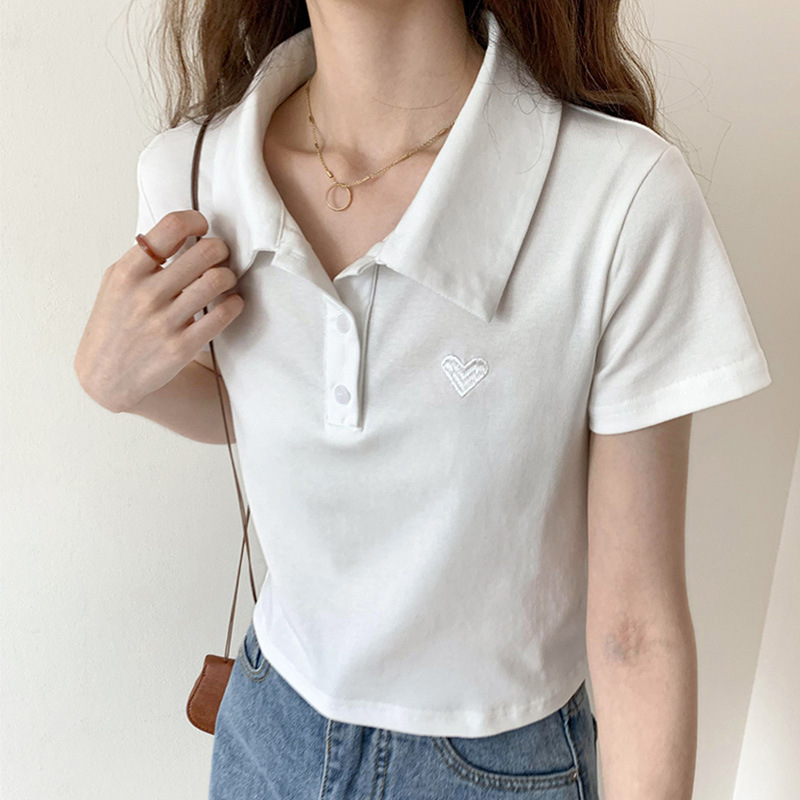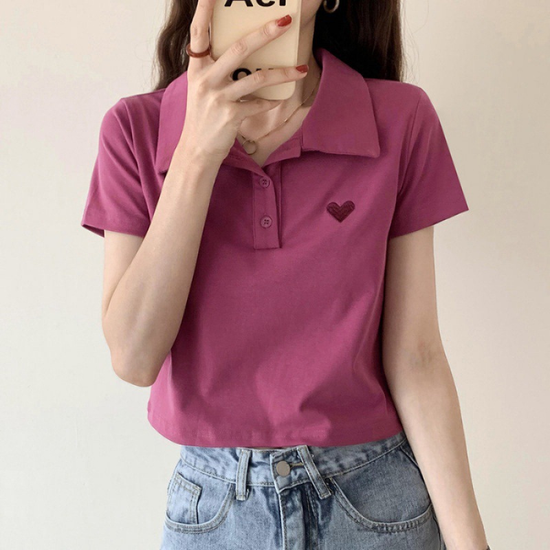Главная страница > Хлопчатобумажная футболка с воротником задней сумки Женская футболка с коротким рукавом 2024 новая футболка с татуировки