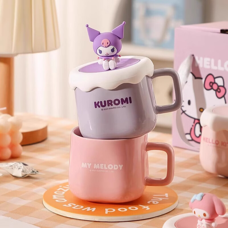 Главная страница > Кружка Sanrio, высококачественная керамическая кружка для питья с силиконовой крышкой, оптом, с изображением Куроми и Hello Kitty.