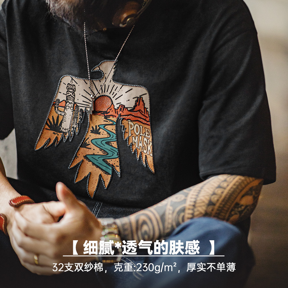 Главная страница > Рабочая одежда Maden, американская ретро-футболка Indian Thunderbird, хлопковая мужская летняя футболка с короткими рукавами и вышивкой в этническом стиле