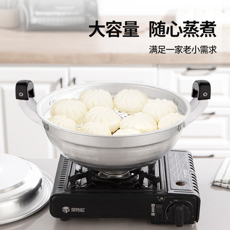 Главная страница > Алюминиевый горшок бытовой суповой горшок старомодная утолщенная Пароварка вареные пельмени из чистого алюминия с пароваркой газовая плита двухушная алюминиевая Пароварка с круглым дном