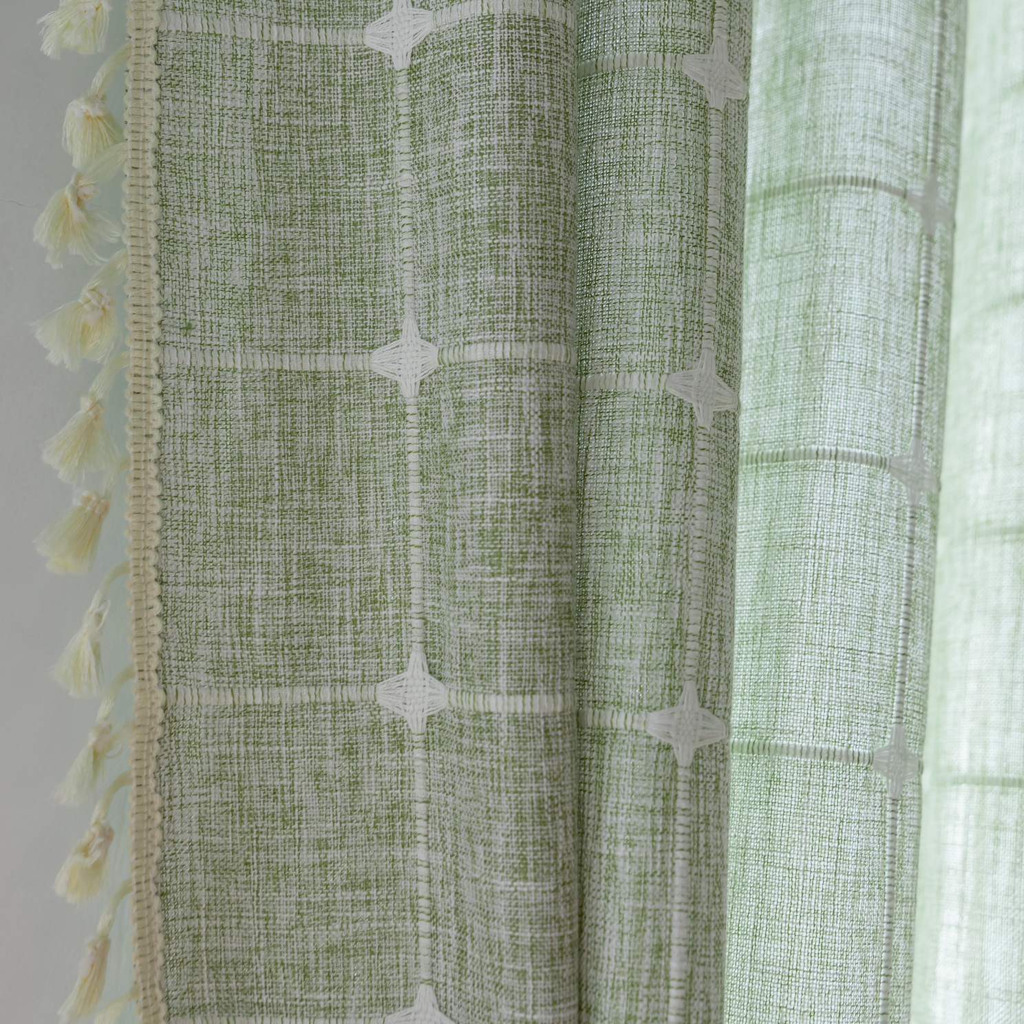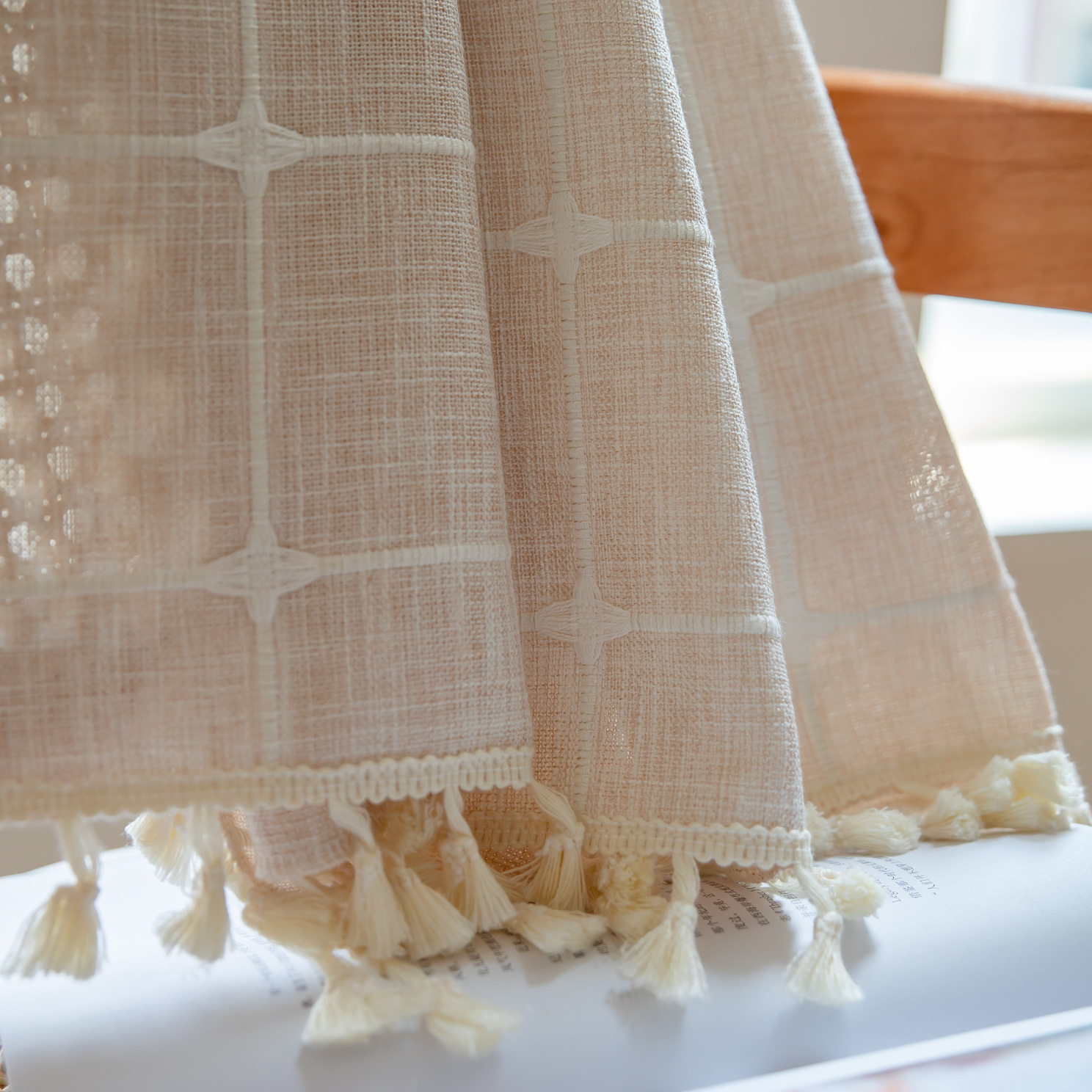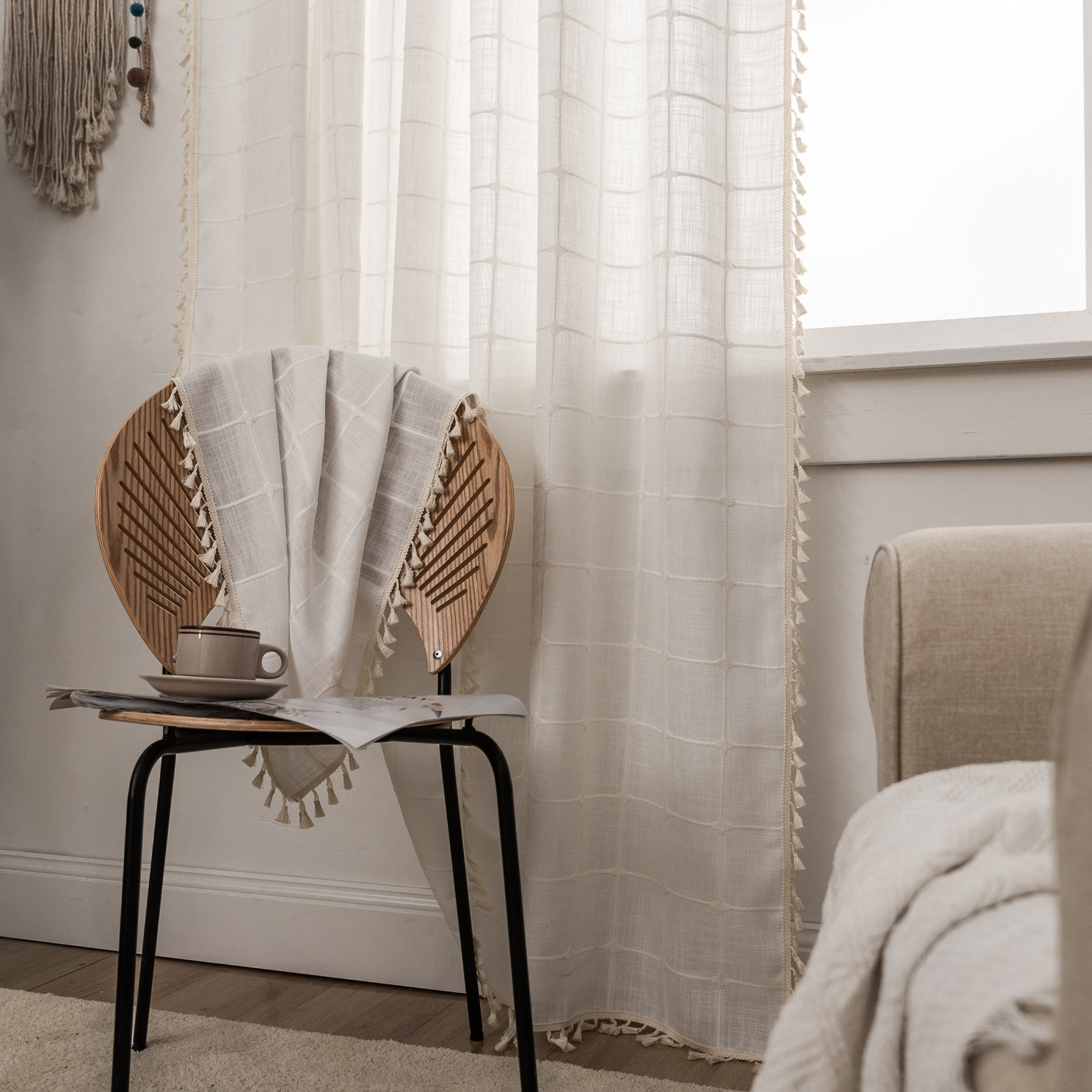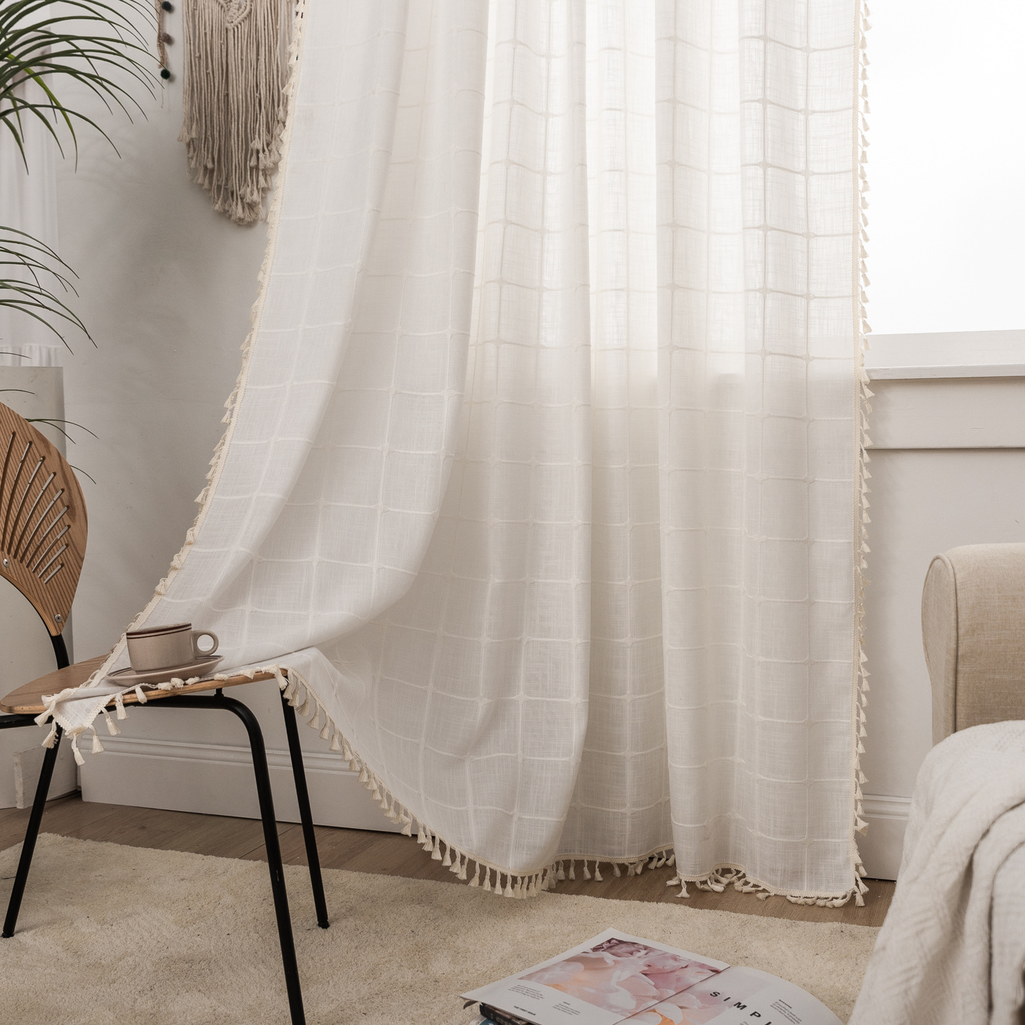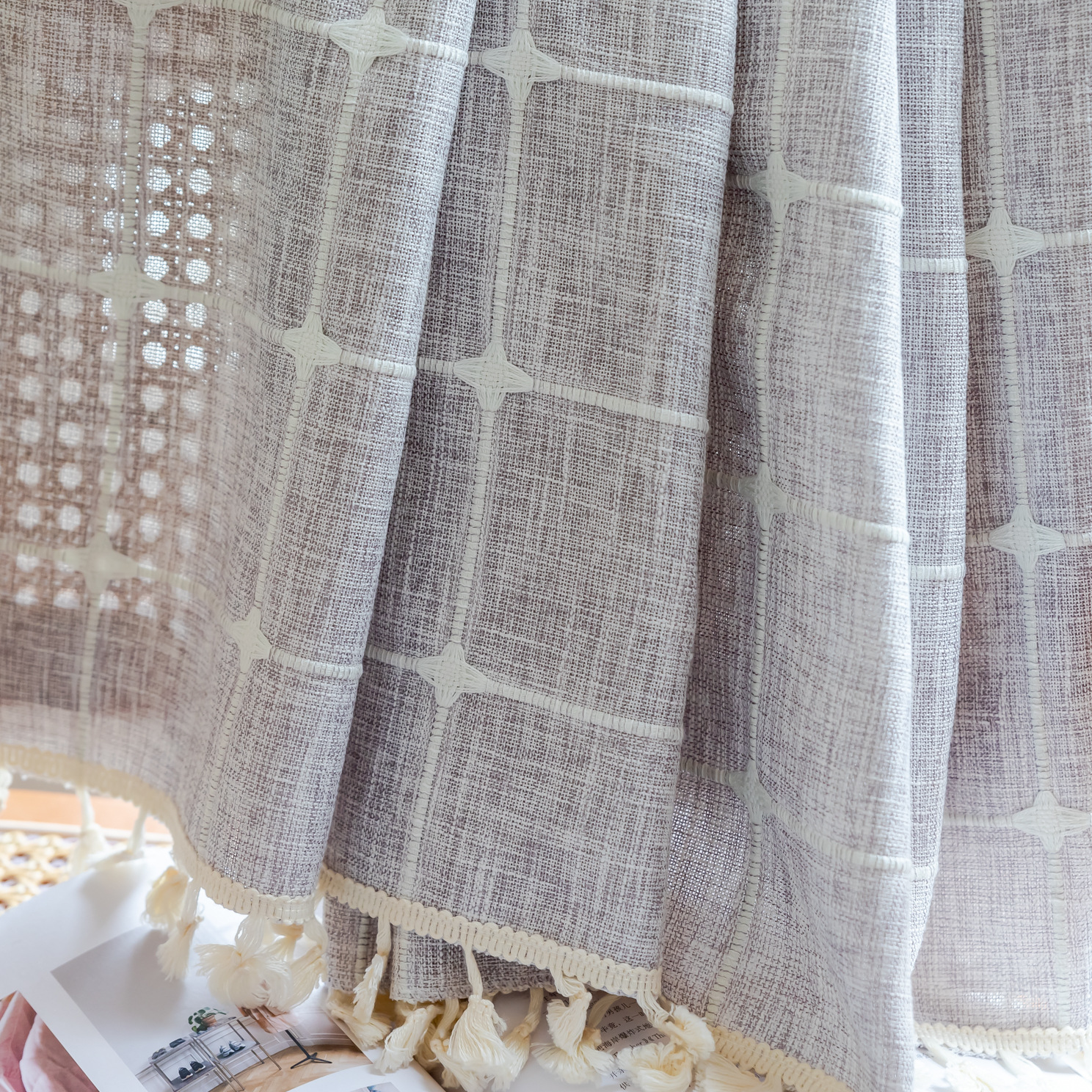 Готовая продукция для штор Эксклюзивно для США через границу для Amazon INS Хлопковая и льняная клетка Молочно-белая кисточка Залив Фабрика оконных штор