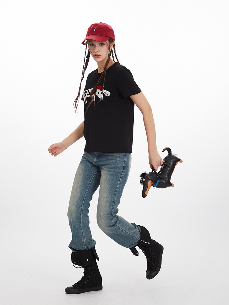 HeyHenry 2025 европейские и американские полотенца с вышивкой буквы хлопчатобумажная повседневная футболка с короткими рукавами