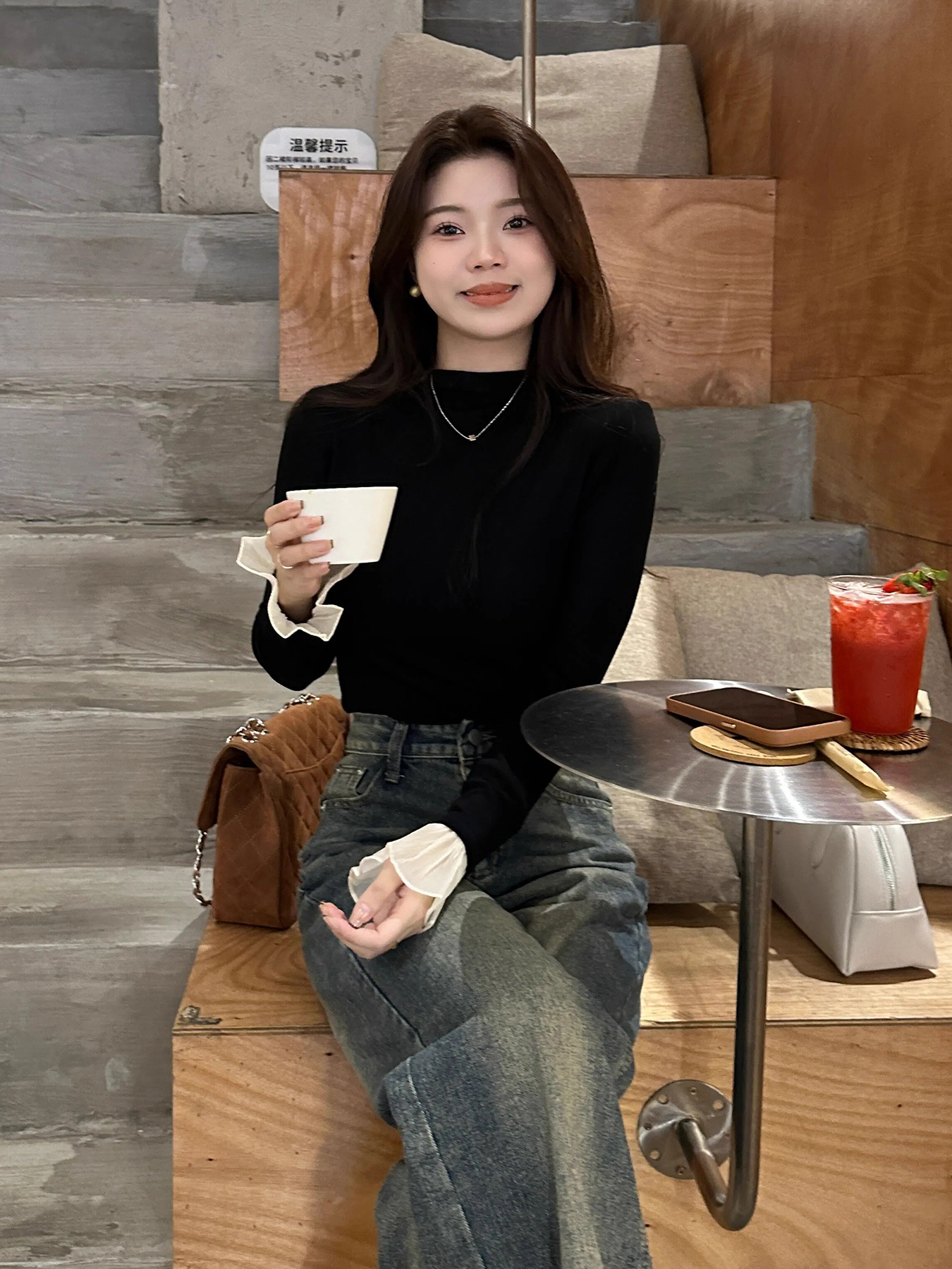 Главная страница > Черная женская базовая футболка с воротником-стойкой, осенне-зимний базовый слой, высококачественная начесная футболка с длинным рукавом, приталенный крой, уникальный топ.
