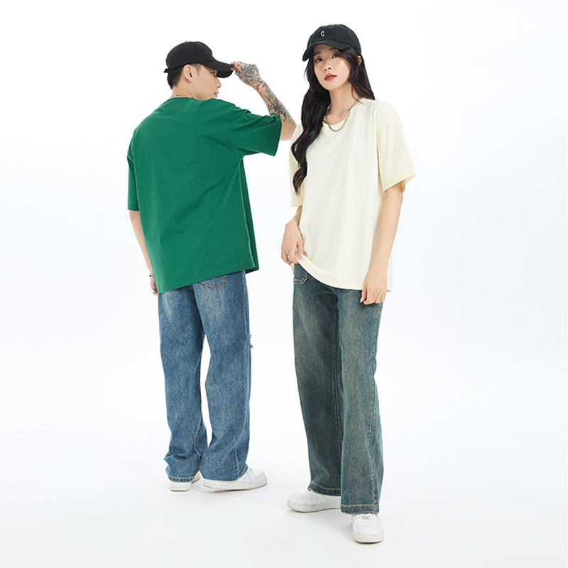Главная страница > Летняя футболка с коротким рукавом для мужчин, плотный хлопок 220 г, свободный крой с заниженной линией плеча, круглый вырез, базовая футболка для мужчин и женщин.
