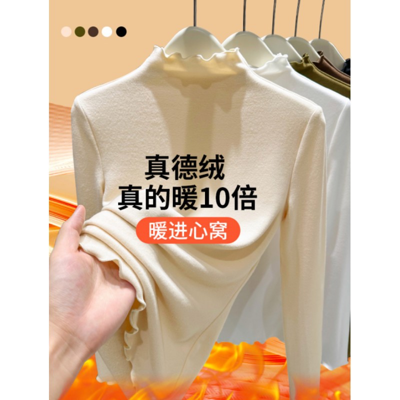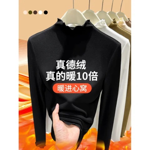Главная страница > Женская базовая футболка из вельвета с воротником-стойкой, новинка осени-зимы 2025, самонагревающаяся и теплая, внутренний слой с оборками, стильная футболка.