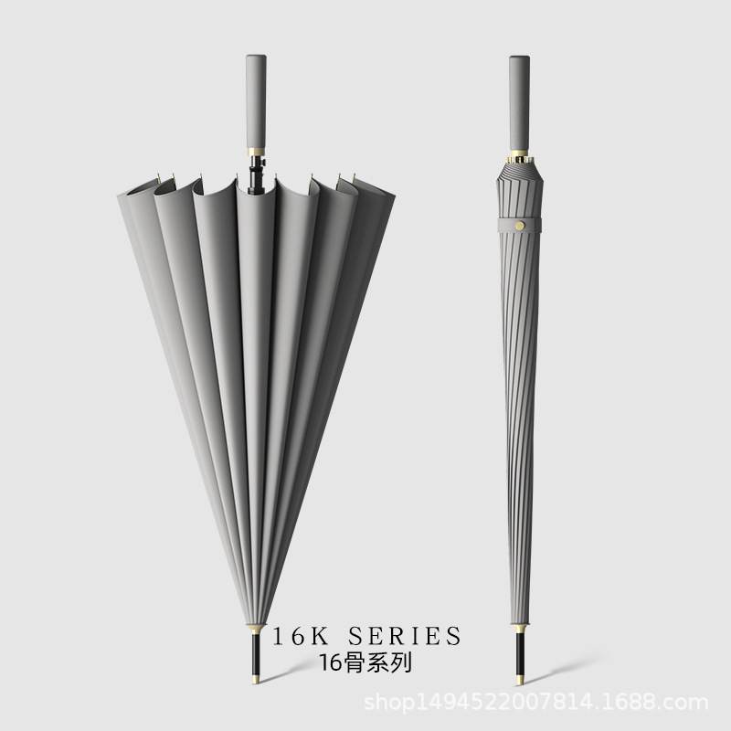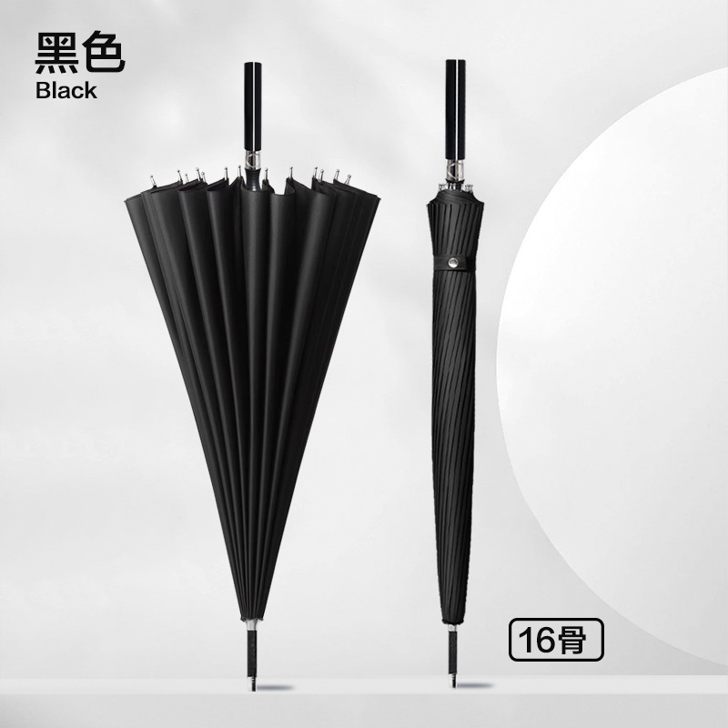 [Усовершенствованная кнопка экрана] 16-костный черный зонт с длинной ручкой
