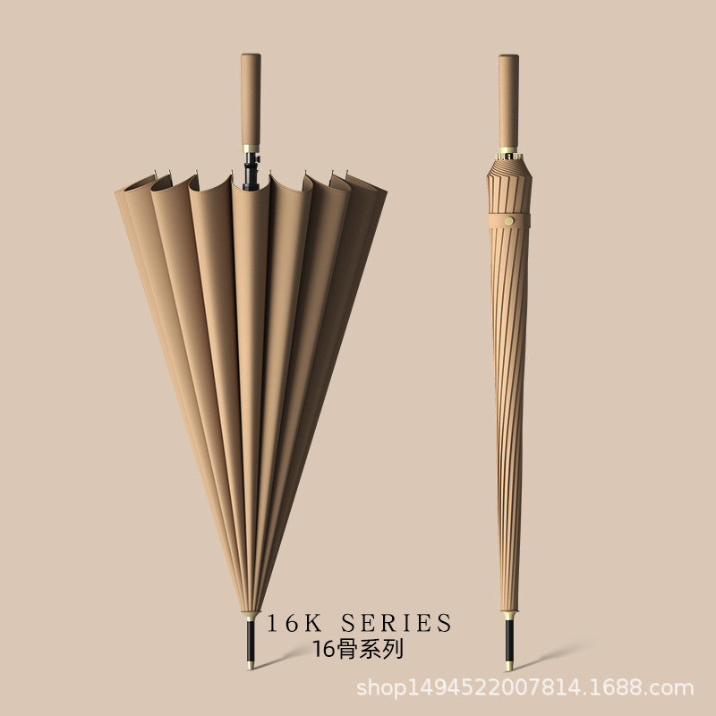 [Усовершенствованная ручка из ротанга] 16-костный зонт с черной ручкой