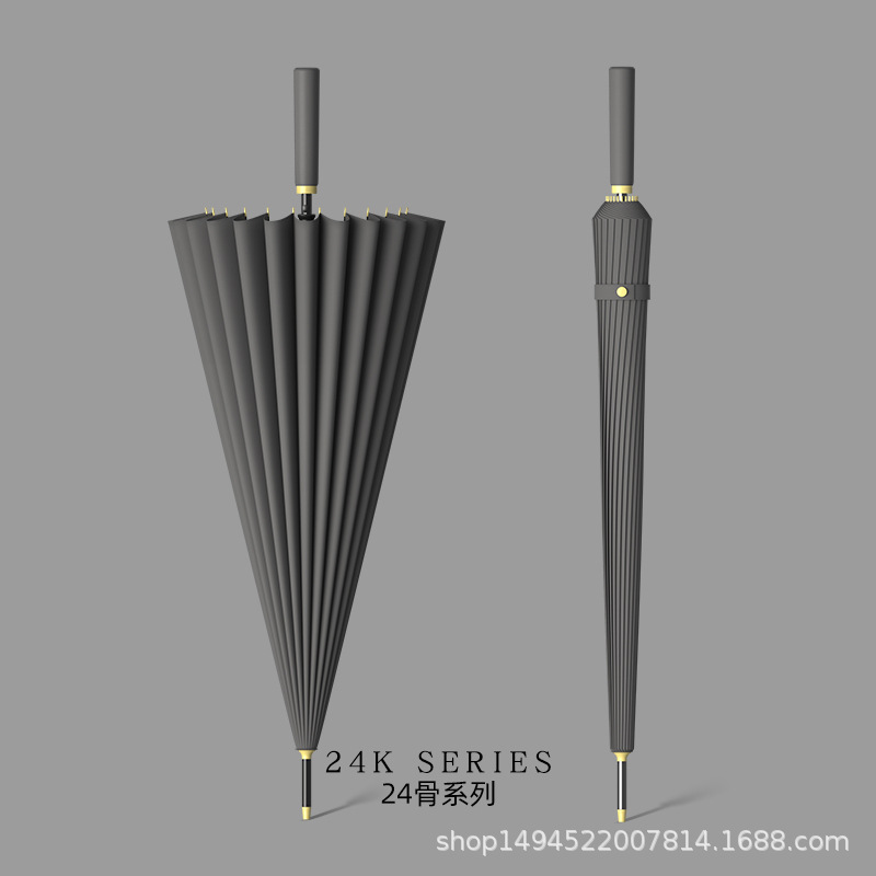 [Усовершенствованная кнопка защиты] 24-костный зонт с черной ручкой и длинной ручкой
