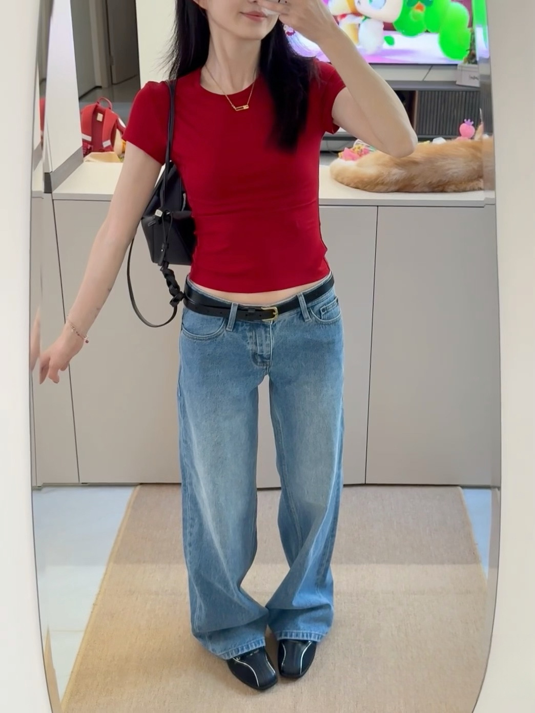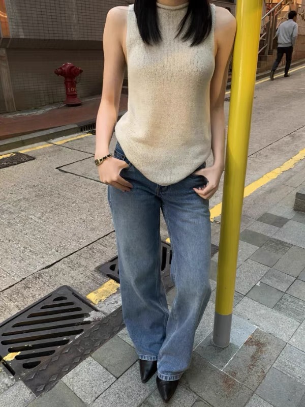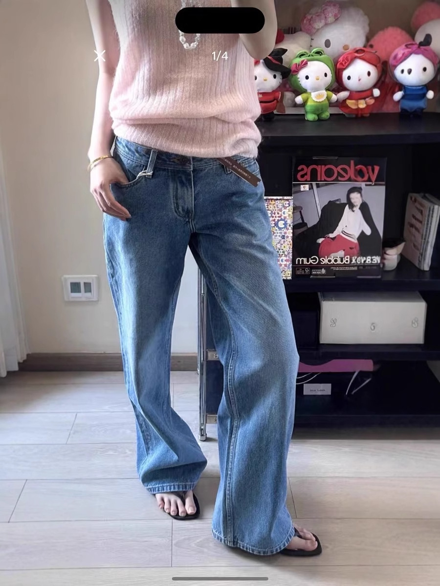 Главная страница > Женские потертые джинсы со средней и низкой талией, новые утягивающие джинсы 080L, светло-голубые свободные прямые джинсы из чистого хлопка в стиле ретро 5010