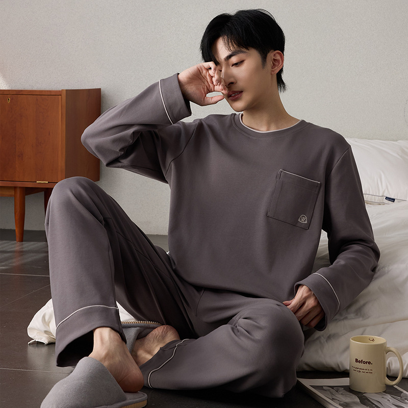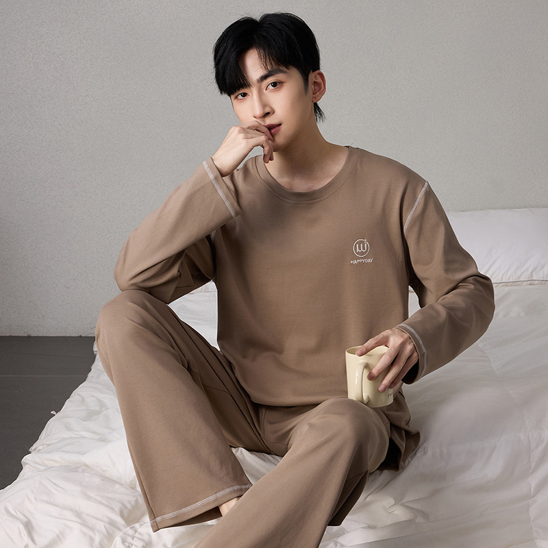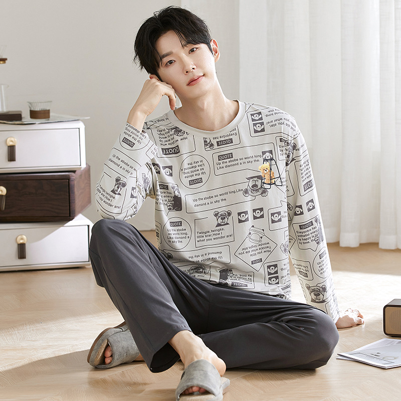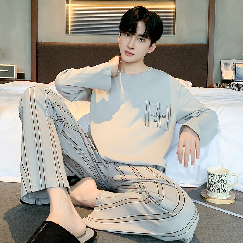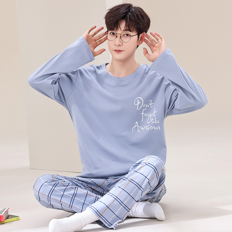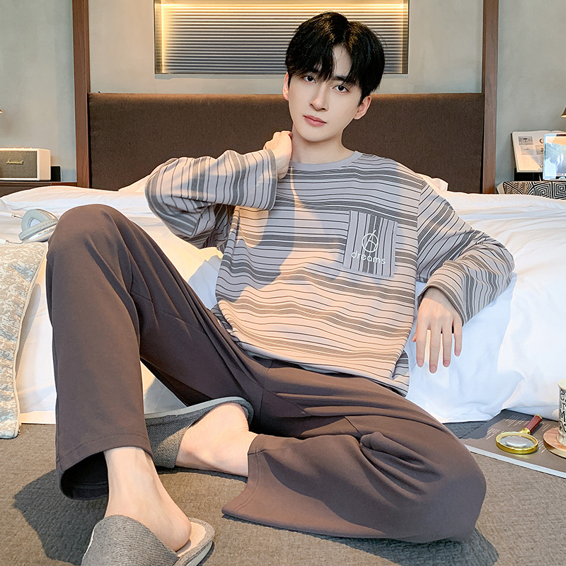 Главная страница > Мужская пижама из 100% хлопка, весенне-осенний пуловер с длинным рукавом, молодежная хлопковая Повседневная Домашняя одежда, верхняя одежда, костюм