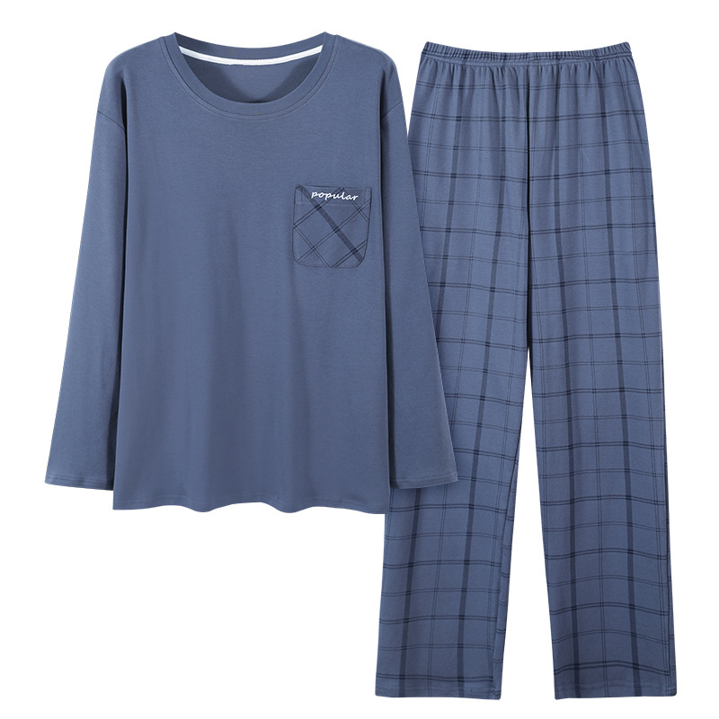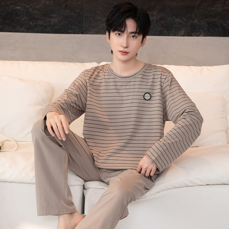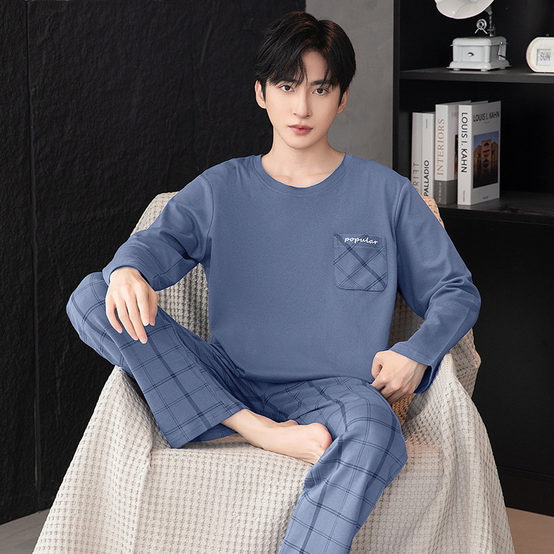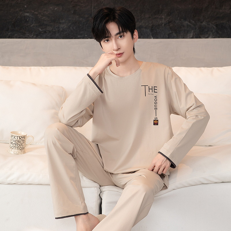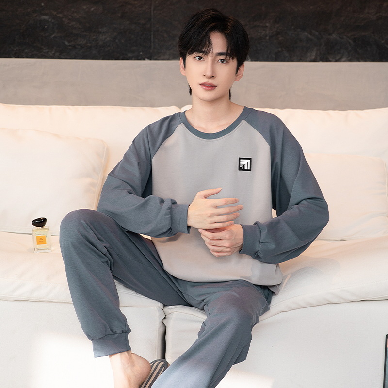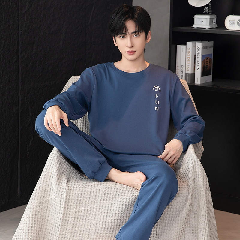 Главная страница > Пижама мужская весна и осень с круглым вырезом с длинными рукавами брюки набор простой повседневный можно носить на улице