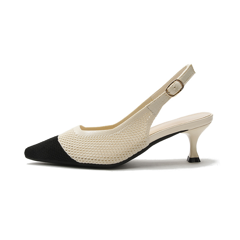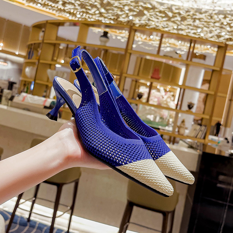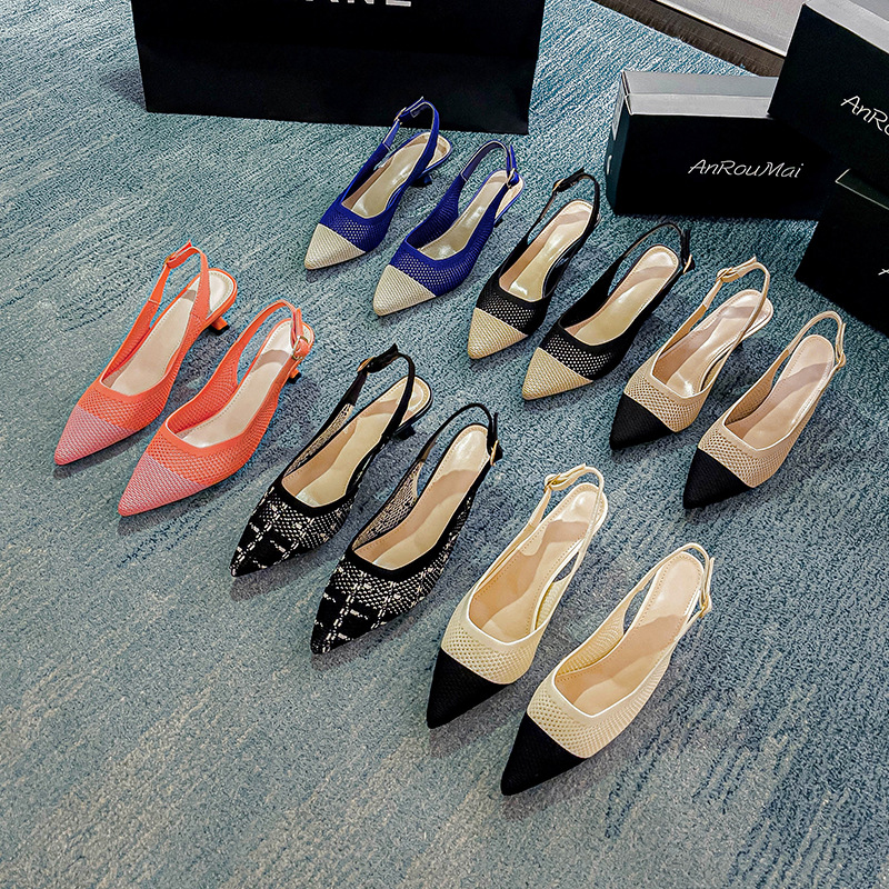 Главная страница > Модные женские босоножки на шпильке с закрытым носком и ремешком сзади, в стиле Chanel, из сетчатого трикотажа с цветовыми блоками, летняя коллекция 2024 года.
