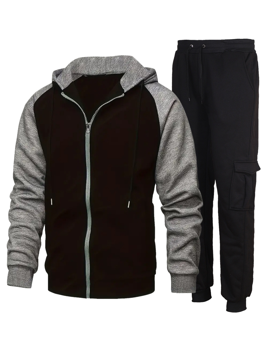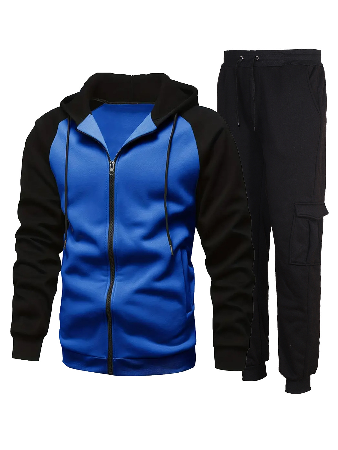 Трансграничное Новое мужское осенне-зимнее пальто с капюшоном Amazon из двух частей + комбинезоны, мужской повседневный спортивный костюм
