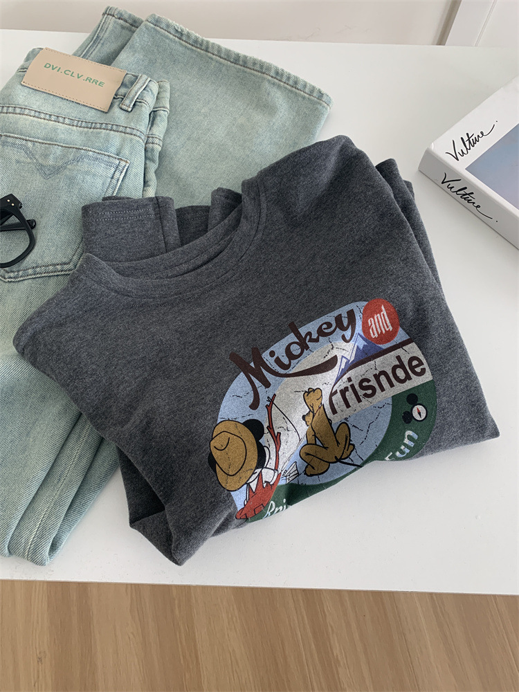 Главная страница > Весенняя толстая полировка мультипликационная футболка женская свободная повседневная американская ретро с мягкой осенней и зимней мягкой рубашкой с длинными рукавами