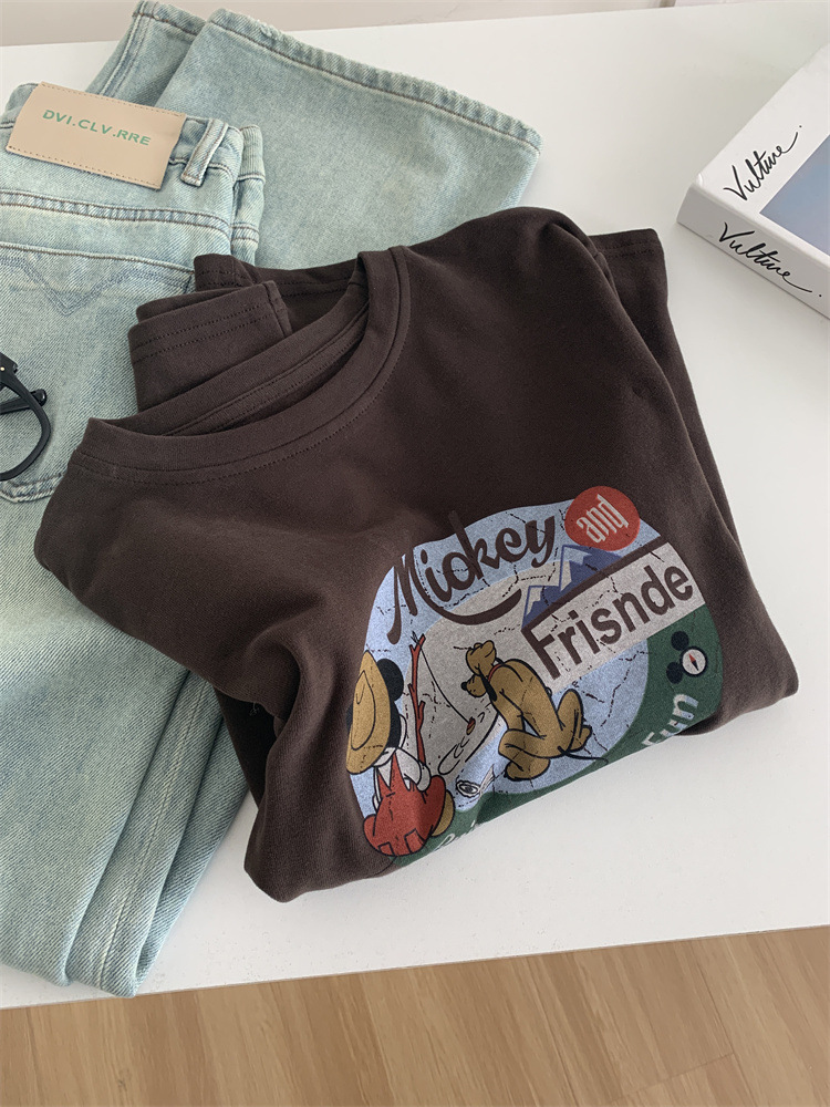 Весенняя толстая полировка мультипликационная футболка женская свободная повседневная американская ретро с мягкой осенней и зимней мягкой рубашкой с длинными рукавами