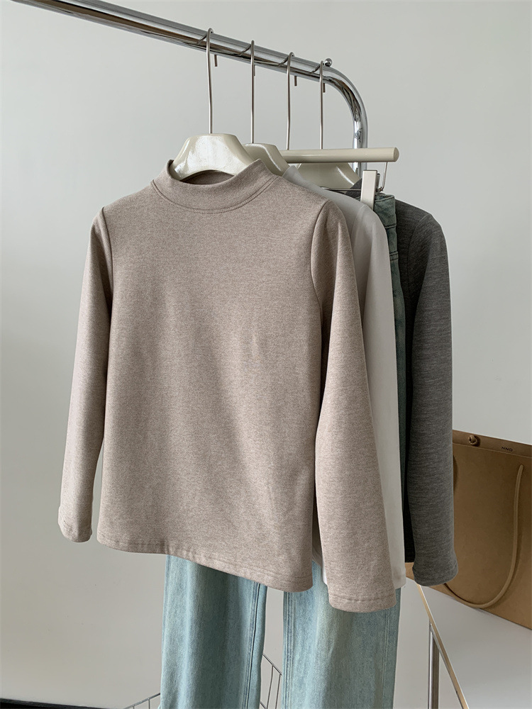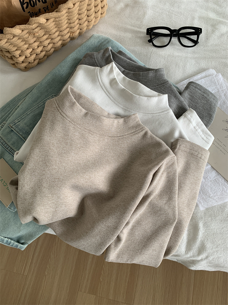 Главная страница > Толстый теплый маленький стоячий воротник шелковая шерстяная нижняя рубашка женская основа мягкая клейкая горячая футболка с длинными рукавами осенью и зимой