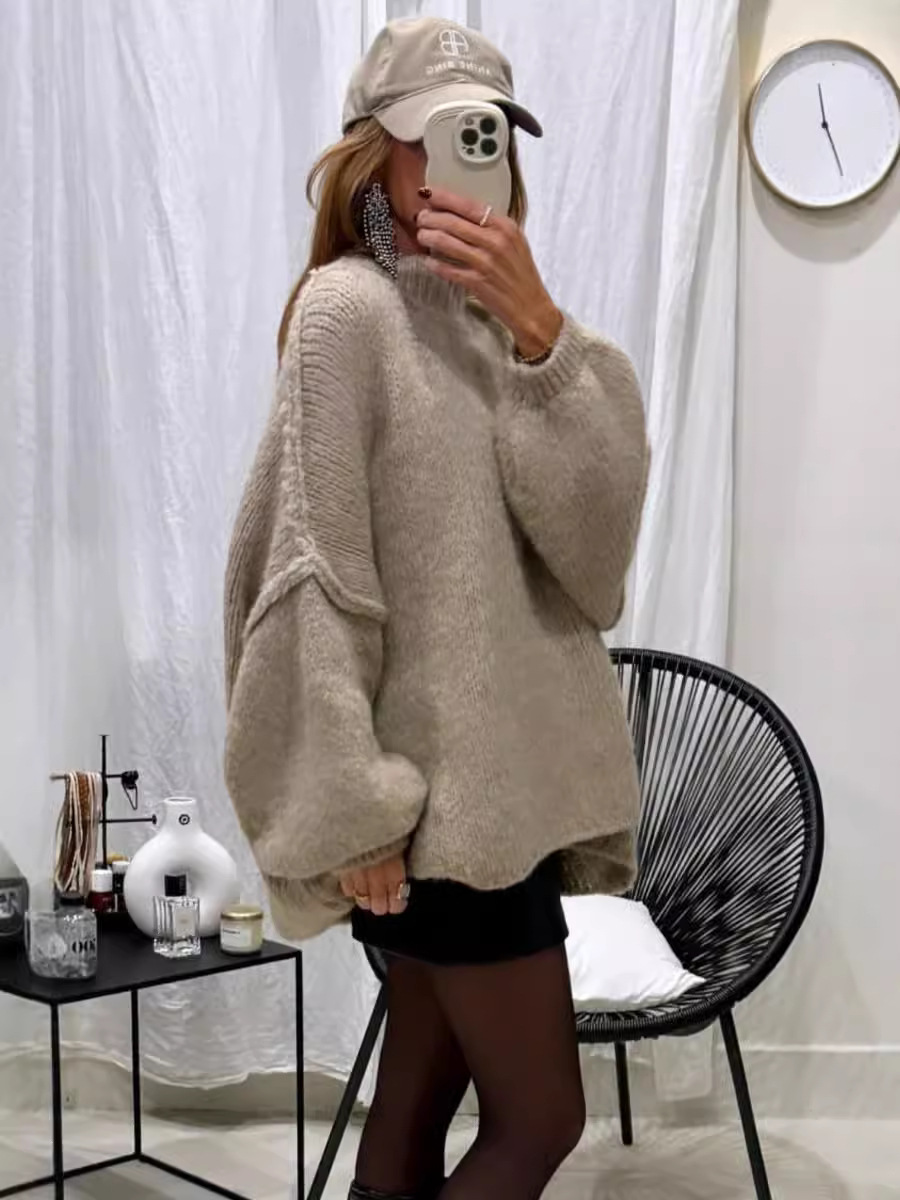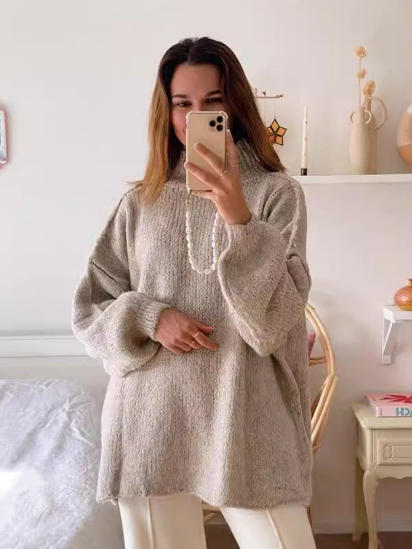 Главная страница > Трансграничная Амазонка осень-зима новый свободный полувысокий воротник пригородного ветра поддельный трикотажный пуловер сплошной цвет свитер женский