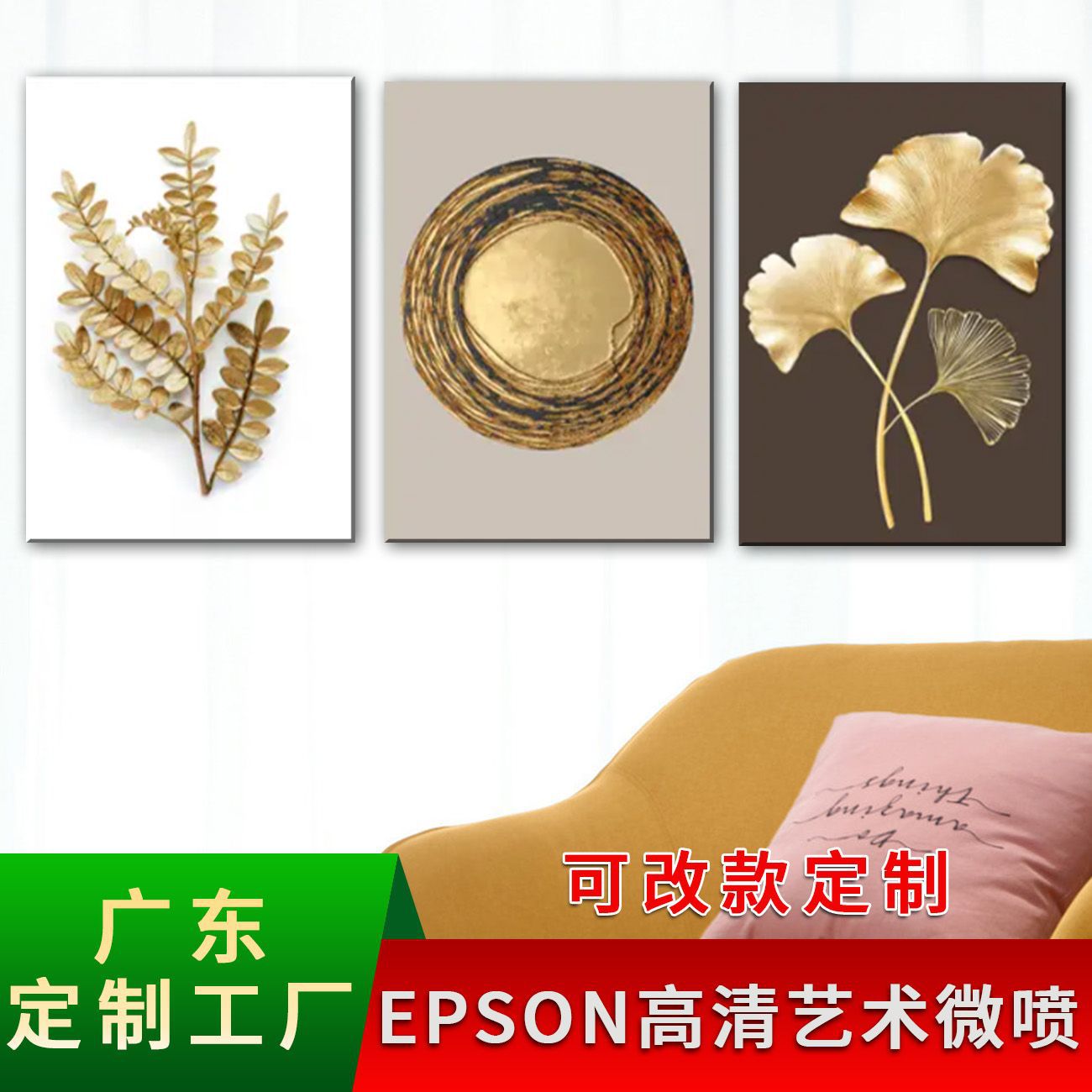 Главная страница > ИСТОЧНИК Фабрика Золотые листья спальня подвесная живопись растение холст роспись скандинавский стиль лист гинкго гостиная декоративная живопись