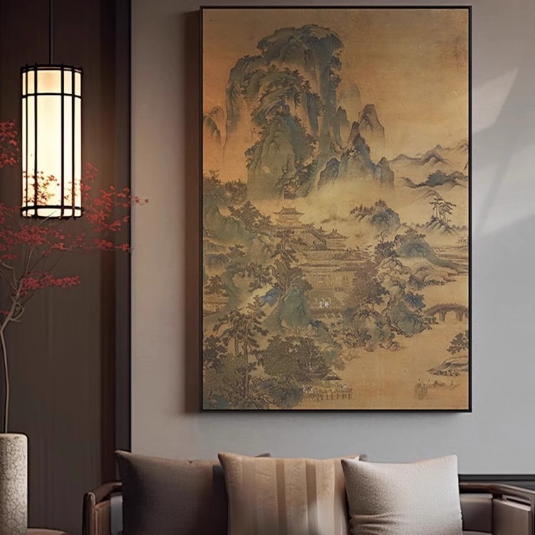 Главная страница > Xianshan Lou Pavilion Новый китайский коридор, висячий коридор, классическая пейзажная фреска, чайная комната, вертикальная декоративная роспись
