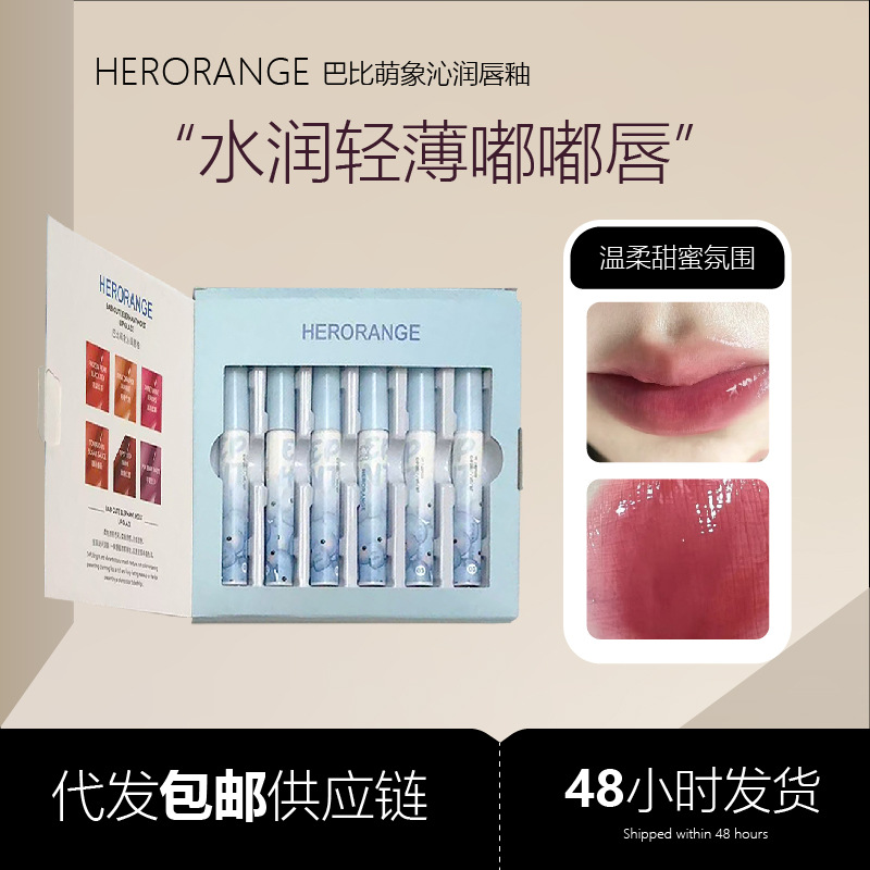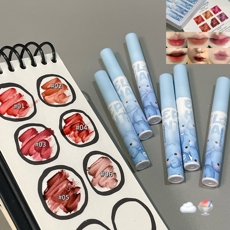 HERORANGE~ Набор из шести блесков для губ Barbie Cute Elephant, увлажняющий, в корейском стиле, стойкий, с естественным пигментом, молодежный и увлажняющий.